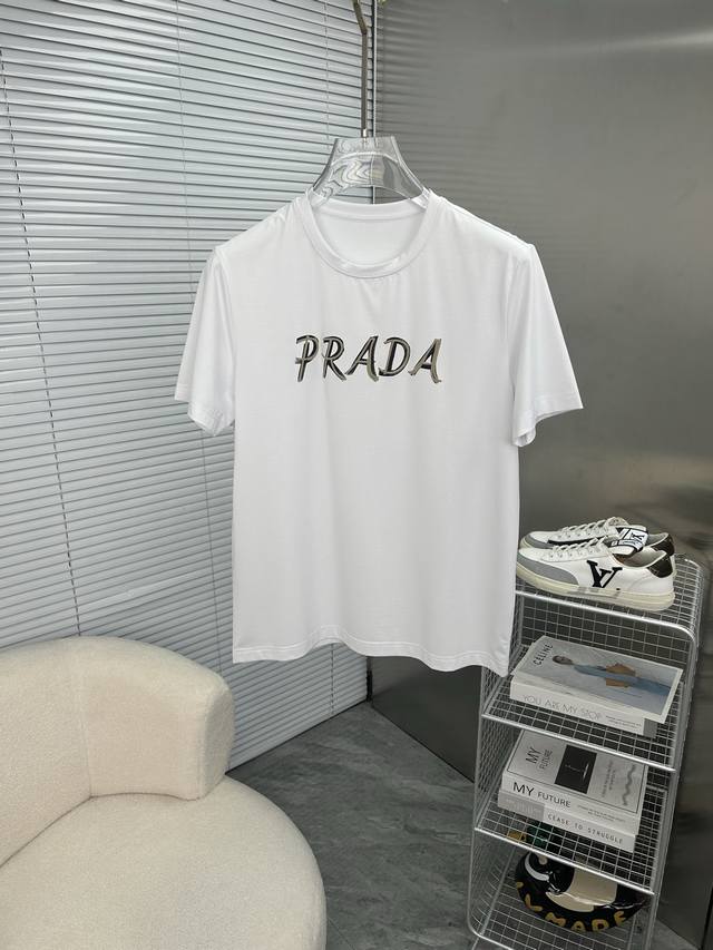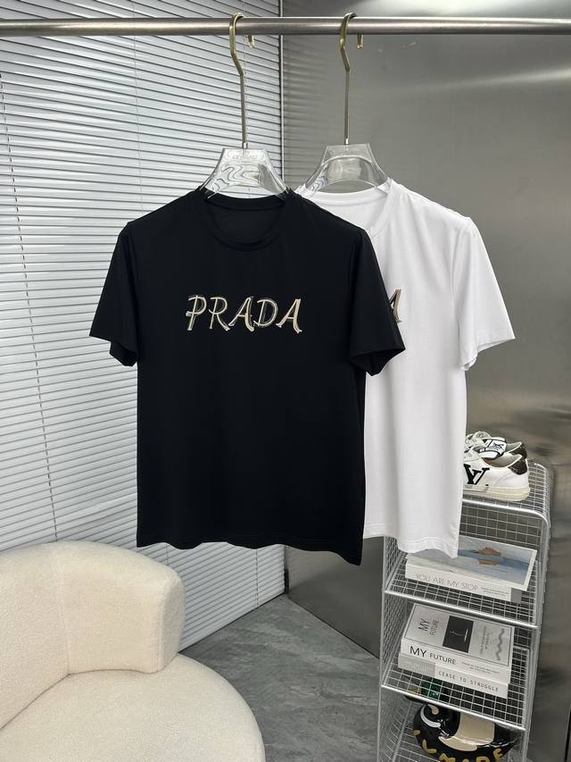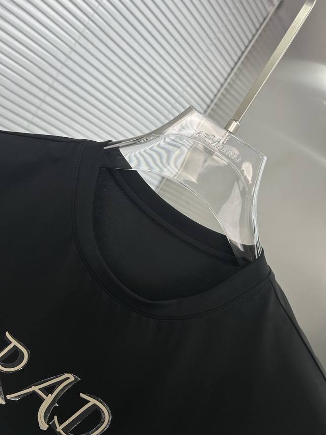 Prada 2025 Spring/Summer High-Quality Mercerized Cotton Short-Sleeved T-Shirt (M-6Xl), Wearable up to 230 catties. Top-quality, original quality, meeting the latest craftsmanship requirements, with top-tier orders requiring top-tier stitching and workmanship. Perfect for pairing, top-tier customization, with top-notch detailing, quality, and tailoring. Custom-made from imported mercerized cotton fabric! Stylish and versatile with a sophisticated and versatile color palette. Please provide your height and weight
