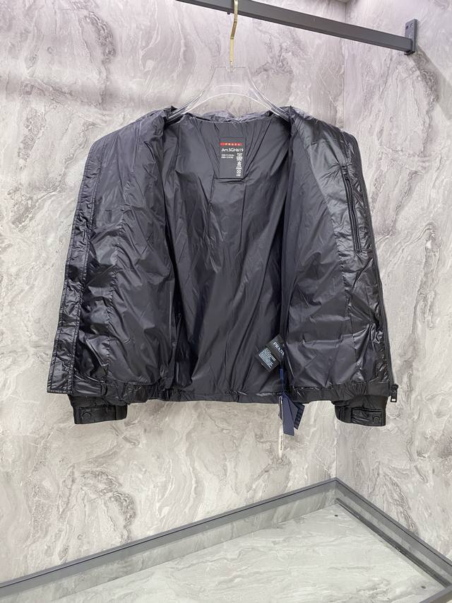 Prada 2025 Winter New Stand Collar Hooded Down Jacket (Ddd) Detachable Hooded Diamond-Shaped Step Down Jacket ~ Custom-made zipper, triangular badge embellishment on the chest, front and back feature a stepped 3D structure. The entire jacket uses a 3D quilting process, each step is evenly full and fluffy! Suitable for all body types, classic style, timeless, warm and practical. Top quality, 100% custom-made special fabric, top-quality silky smooth feel, versatile style, original custom-made ultra-fine elastic fabric, custom-filled with 90% white duck down, lightweight, soft, comfortable, warm and stylish! Ddd Black, sizes 48-56. Ddd size 48: Shoulder width 54cm, Chest 106cm, Length 67cm, Sleeve length 58cm; Ddd size 50: Shoulder width 55cm, Chest 110cm, Length 68cm, Sleeve length 59cm; Ddd size 52: Shoulder width 56cm, Chest 114cm, Length 69cm, Sleeve length 60cm; Ddd size 54: Shoulder width 57cm, Chest 118cm, Length 71cm, Sleeve length 61cm; Ddd size 56: Shoulder width 58cm, Chest 122cm, Length 72cm, Sleeve length 62cm; DDD