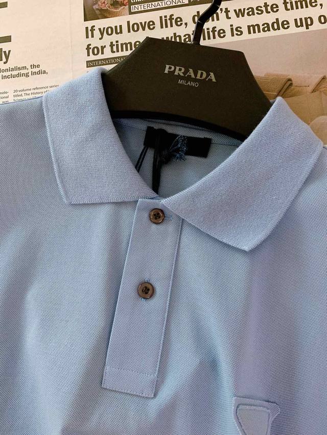 Prada 2025Ss Spring/Summer New Product Classic Triangle Logo Cotton Polo Shirt M