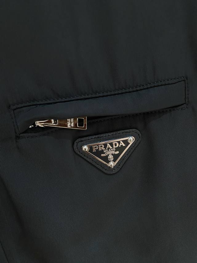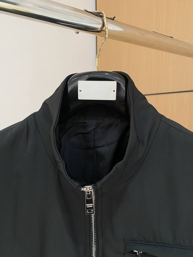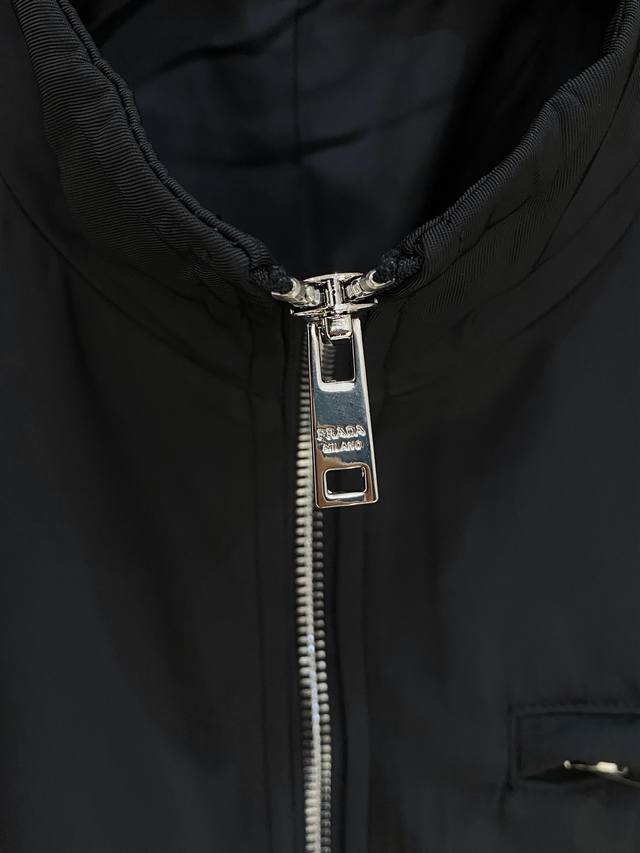 Prada 25Ss Autumn/Winter New Fashionable and Versatile Men's Casual Jacket. The hood can be detached to create a stand-up collar, offering two ways to wear it for a versatile and casual look. Jackets made of slightly wrinkled fabric have become very popular in recent years. This doesn't mean the fabric itself is poor quality and wrinkles, but rather it's a deliberately designed texture effect aimed at creating a casual, relaxed, retro, or unrestrained fashion style. This fabric has specific characteristics and significant advantages. The surface of the fabric has evenly or irregularly distributed, fine, permanent wrinkled textures. This texture is formed through mechanical wrinkling or heat pressing. The slightly wrinkled feel is created by the natural shrinkage of highly twisted yarns during weaving. Special finishing processes, such as seersucker effects or resin finishing, intentionally enhance and fix this effect. The fabric has a rich hand feel; the touch is usually not completely smooth, but rather has a certain grainy, textured, or soft and fluffy feel, depending on the wrinkling process and the base fabric material. Slightly wrinkled fabric is relatively soft, and with the presence of wrinkles, the overall drape is good, resulting in smooth and natural lines when worn. Core Advantages: Wrinkle-free and non-iron! The subtle wrinkles are an integral part of the design, so natural creases from daily wear are "hidden" or "integrated" into the original texture, greatly reducing the hassle of needing ironing. Perfect for those seeking a low-maintenance, casual style. Unique style and fashion sense: The subtle wrinkle texture exudes a relaxed, retro, artistic, effortless, and slightly distressed vibe, easily enhancing the chicness of any outfit. It breaks away from the traditional flat and rigid impression of jackets, appearing more individualistic and assertive. Like autumn leaves naturally piled up, the beauty of the subtle wrinkle fabric lies precisely in its effortless, relaxed feel