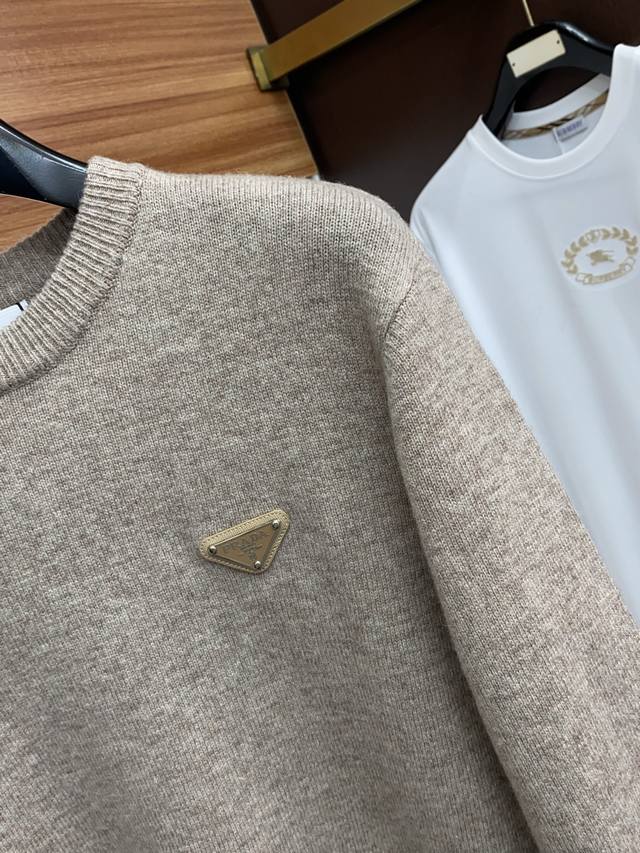 Prada Crew Neck Wool Sweater, woven with delicate fibers, exudes timeless elegance in every stitch. In the realm of high-end men's knitwear, this sweater represents the pinnacle of the brand's exquisite craftsmanship and superior quality. Made from premium 100% wool, its soft, silky touch feels like a cloud against the skin, providing ultimate comfort. Its excellent warmth locks in warmth and protects against the chill of winter without feeling bulky or restrictive. The classic polo collar design is simple yet elegant, while the unique K-shaped buttons add a touch of sophistication. The impeccable tailoring flatters the figure, allowing every wearer to project a confident and upright posture. Whether for business trips or casual gatherings, this sweater is versatile enough to showcase a man's unique competence and charm! Sizes M-3XL