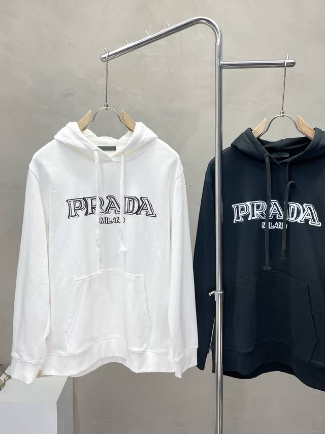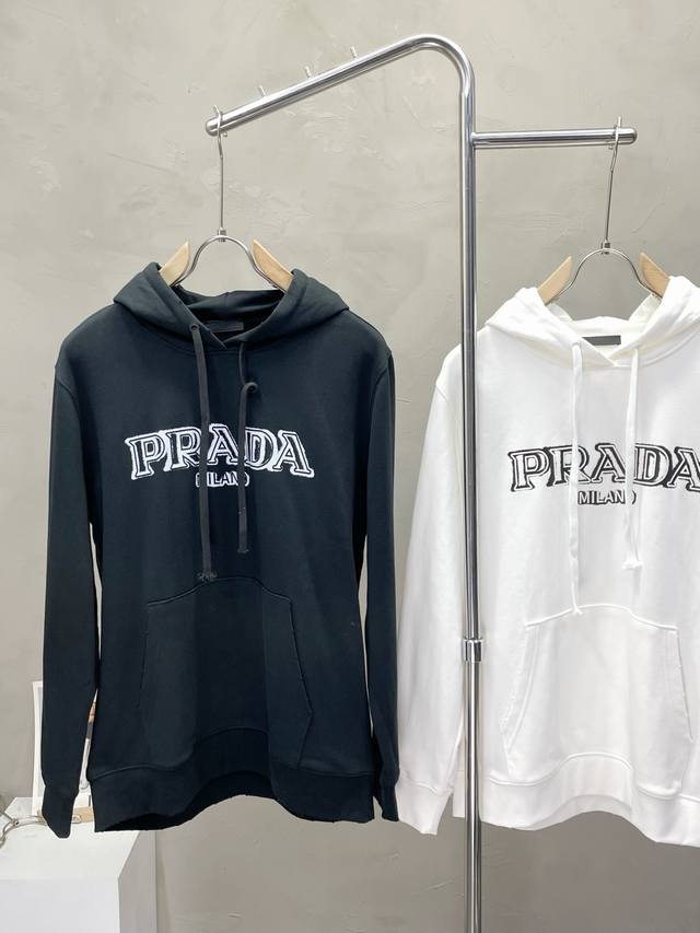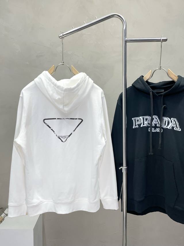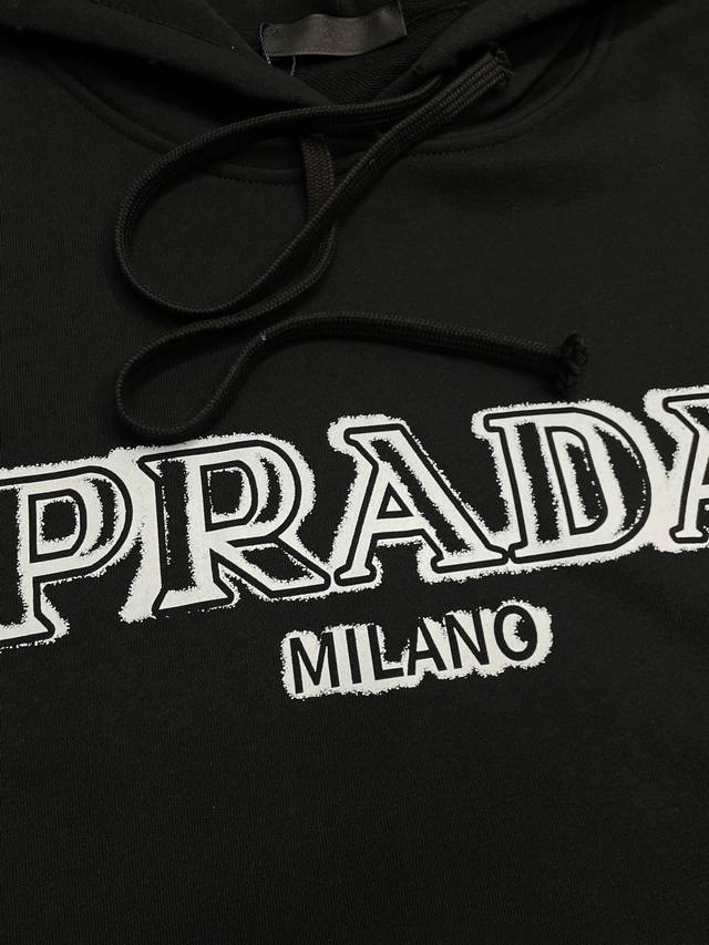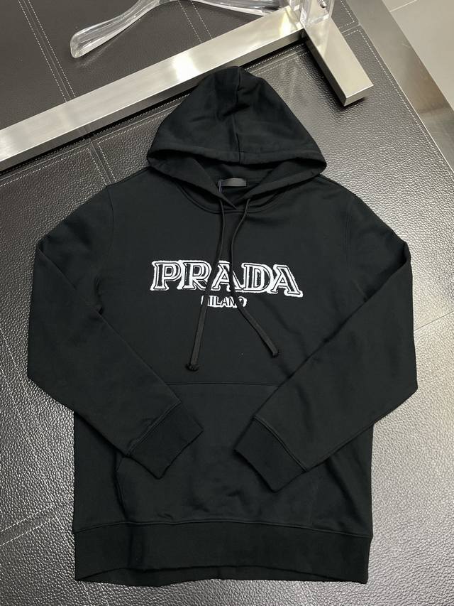 Prada exclusive autumn and winter new original single men's casual hooded sweatshirt high-end customization high version fashionable and versatile popular original imported fabrics collar and hem logo pattern design ultra-soft and delicate feel skin-friendly and comfortable to wear high-end boutique OEM p fine workmanship is very good on the upper body must-have men's single product three standard complete size: M-2Xl