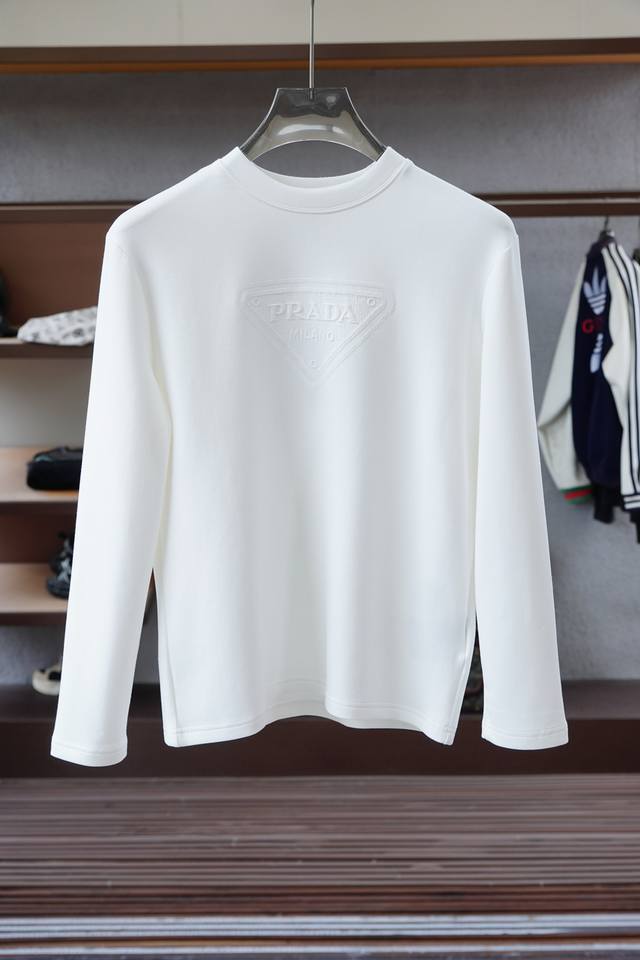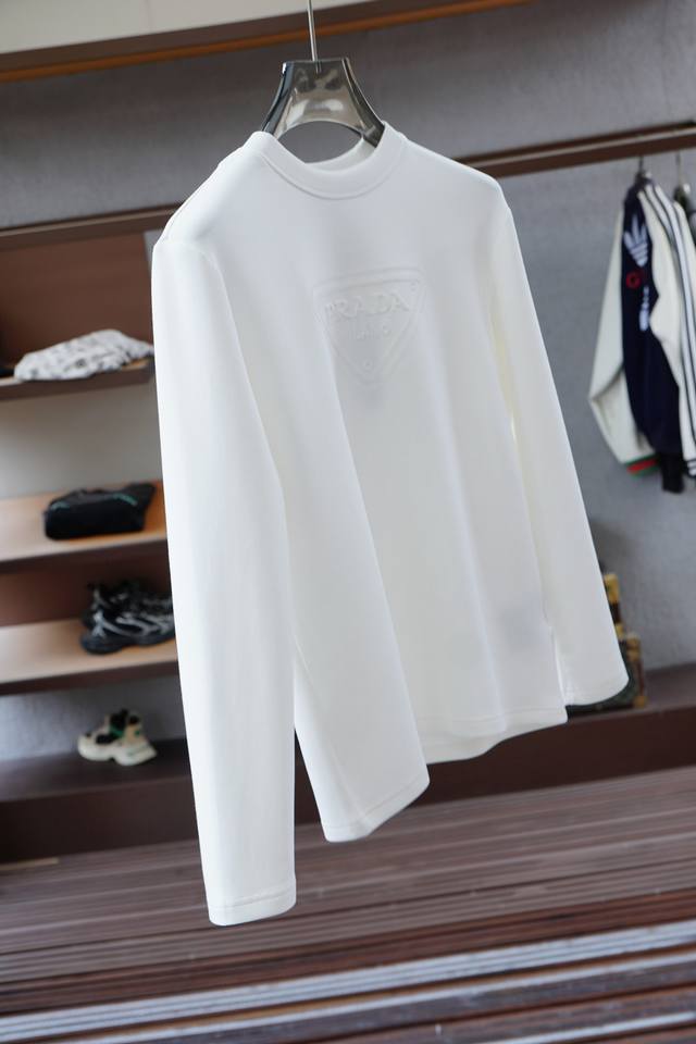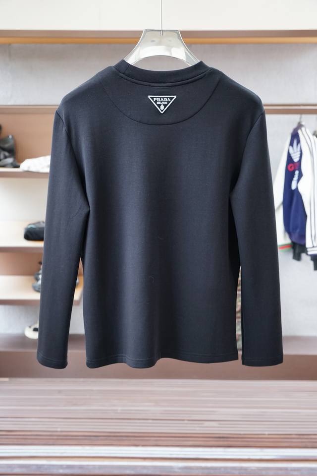 Prada - Haute Couture 2025 Autumn/Winter Base Layer Series! The favorite style of mature and young men, the most classic solid color, commuting and versatile handsome round neck long-sleeved base layer shirt with a consistent good version. Imported original ultra-fine imported soft mercerized cotton. The fabric is soft, elastic and delicate. A basic base layer shirt is indispensable in men's wardrobe and can be used to match various clothing anytime, anywhere to meet your daily needs. The fabrics and factories we choose are those used by first-line brands. The design of the clothes is very simple and low-key. Hurry and get it! Size: M-Xx L Model 173120 catties M