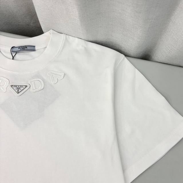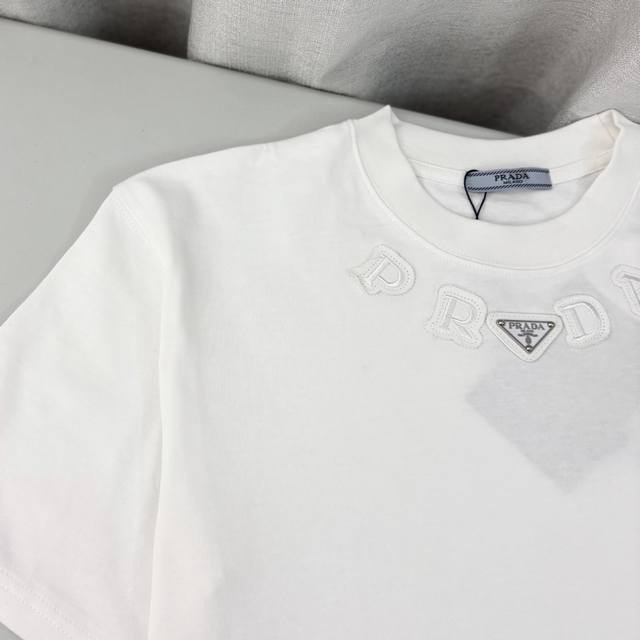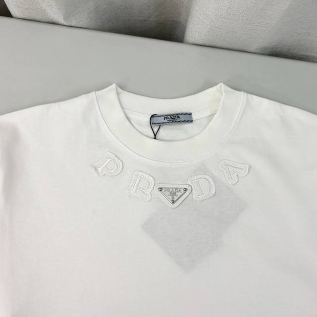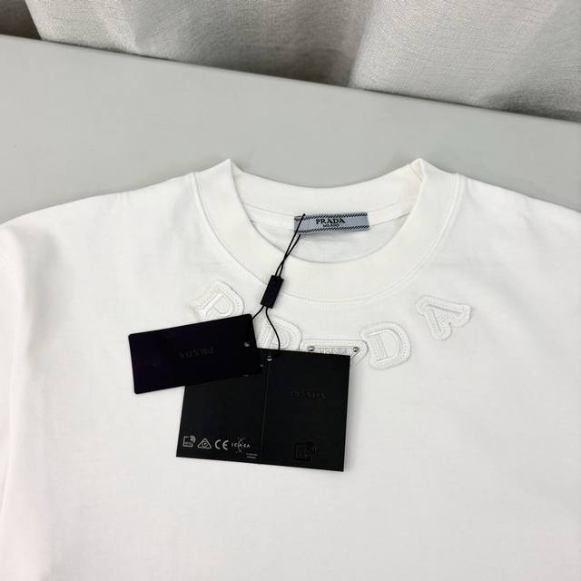 Prada logo patch embroidery triangle iron label heavy craft round neck pullover
