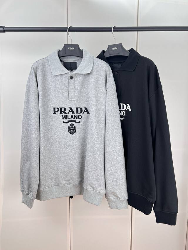 Prada logo towel embroidered polo sweatshirt SML