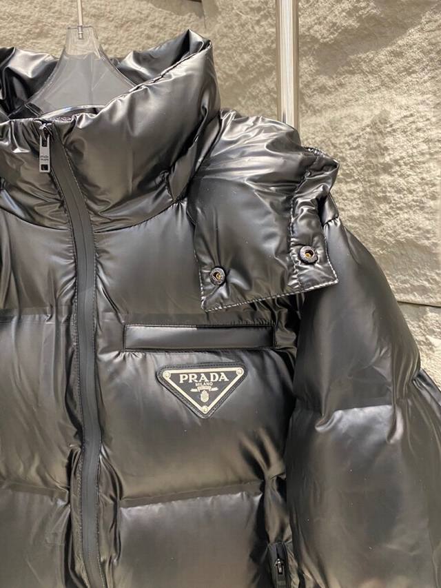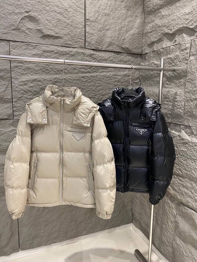Prada New High-Tech Taped Down Jacket DDD High-end Custom Taped Finish! A favorite for sophisticated business professionals, featuring a minimalist style. 90% down filling. Comfortable and stylish fabric! Waterproof and windproof. DDD Super stylish and handsome when worn, the three-dimensional cut design provides high warmth and good elasticity. It's warm and stylish without feeling heavy, highly practical, and doesn't look bulky. It effectively protects against the cold wind! High-quality first choice! DDD Colors: Black, Ash Gray DDD Sizes: 48, 50, 52, 54, 56 DDD Please provide your height and weight when ordering DDD
