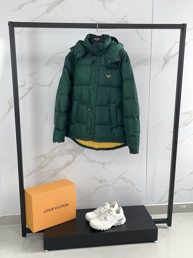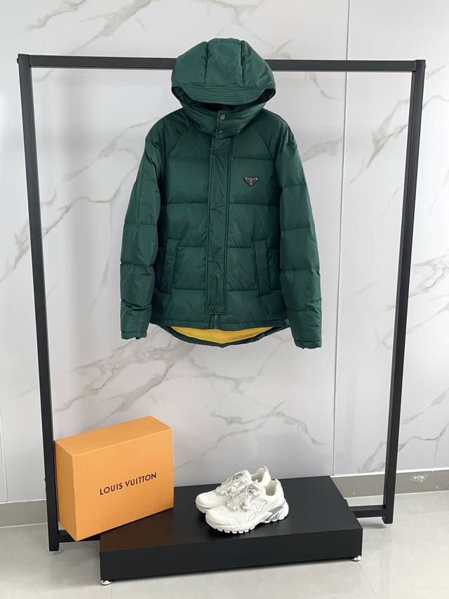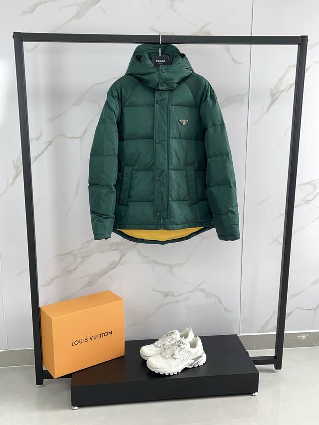 pra*Da Prada 2025 Simple Lightweight Men's Hooded Down Jacket ~ Hood Removable
