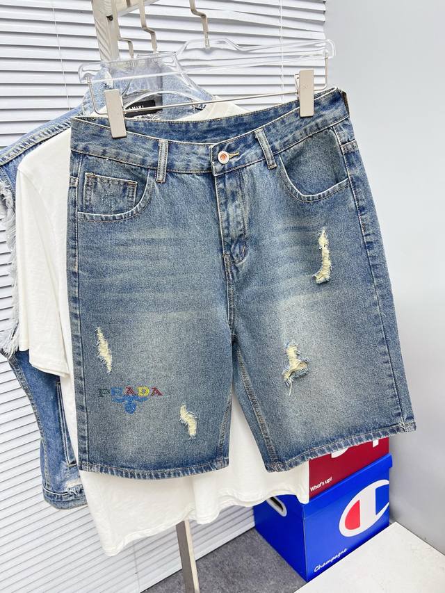 prada Prada 2025Ss new original hot-selling denim shorts, super customized style, original hardware, super heavy craftsmanship, super awesome shape, impeccable detailing! The style is suitable for everyone, the workmanship is high-end, and the super good stuff can't wait, so hurry up and buy it, sizes: 29-38