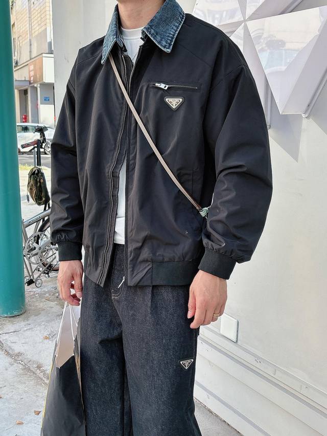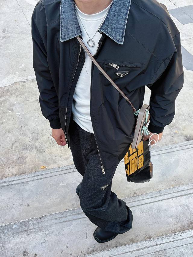 prada Prada's latest men's autumn 2025 solid color long-sleeved, triangle-shaped denim collar jacket with a detachable collar is a classic in its simplicity! Prada is a brand you can't stop wearing! The fit is simply amazing, and it's an absolute must-have! Whether you're looking formal for work or casual for shopping, its versatility is undeniable! The shape is flattering and the color is vibrant. This style will last for ten years and is a must-have for your wardrobe. This denim collar jacket is versatile and can be worn with any style; you can create a fresh look week after week. Made of high-quality, double-washed, pure cotton denim, this top-quality fabric is absolutely worth the price ! The accessories are top-notch! The classic black custom triangle nameplate hardware creates a simple and stylish look! Suitable for both men and women, it adds a touch of class and flair. Sizes: M-3Xl