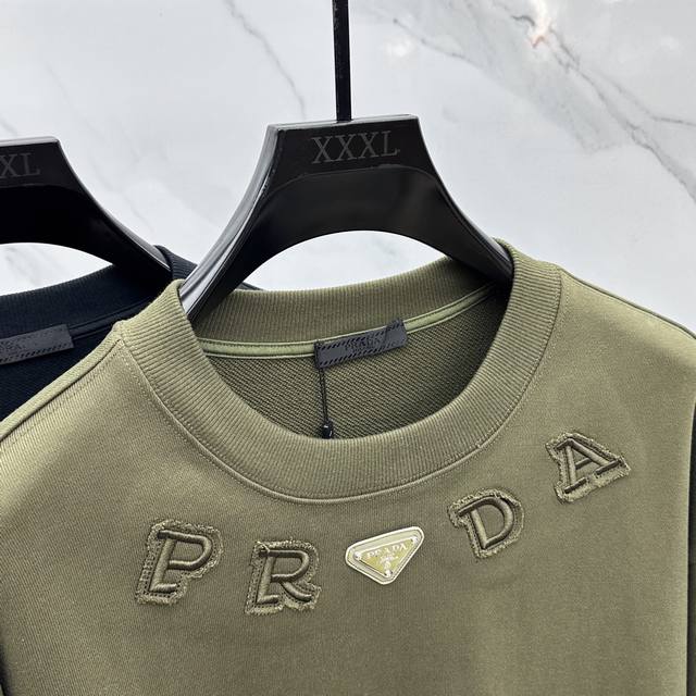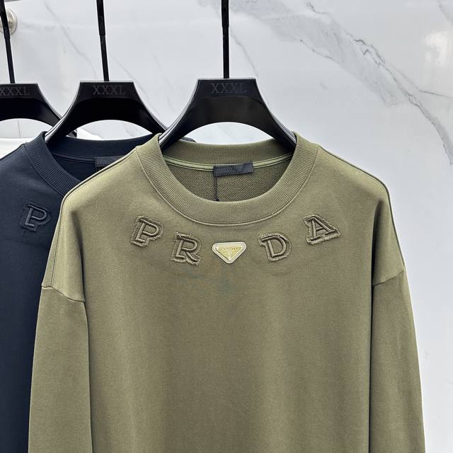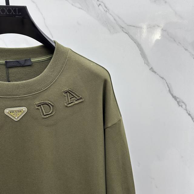 prada* Prada's new Fall/Winter 2025 collection, this logo-emblazoned crewneck sweatshirt is made from 420g cotton double-ply terry, custom-dyed in the same vat. It's shrink-resistant and fade-resistant, with a comfortable feel and exceptional quality. The logo is embroidered on the chest. A classic, slightly oversized silhouette is a must-have for both men and women. Available in Hei