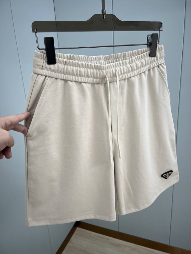 Prada Summer Men's Ice-Oxygen Cotton Casual Shorts. Featuring a classic Prada brand element