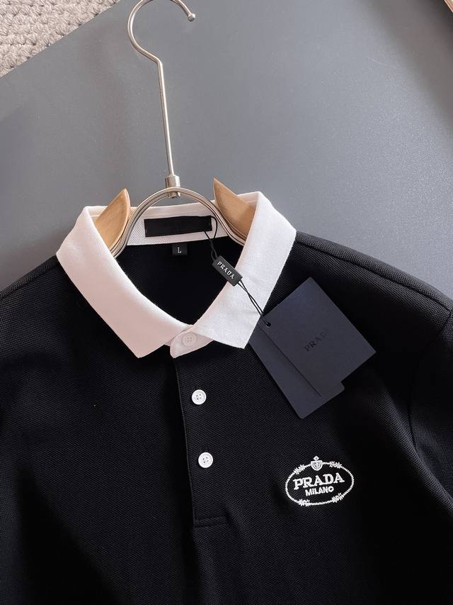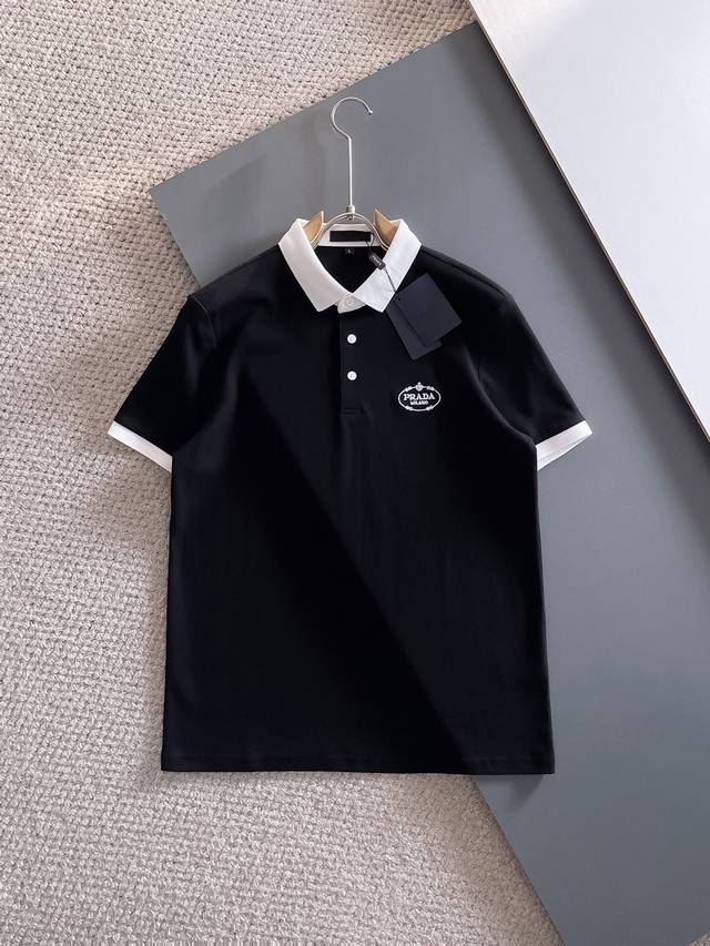 Prada's 2025Ss new summer letter logo men's lapel polo shirt! A classic business style for men, the ultimate in high-end men's business style! Simple, stylish, and elegant, it looks great worn alone or as an inner layer. With quality control and attention to detail, it's understated yet luxurious and sophisticated!