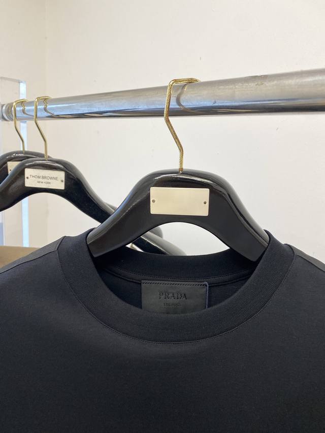 Prada's latest 2025 short-sleeved T-shirt, stylish and stylish, with an embroidered logo underneath, simple and versatile. The cotton fabric is crisp, maintains a trendy silhouette, and is comfortable to wear, with a finer weave. Sizes M-3Xl