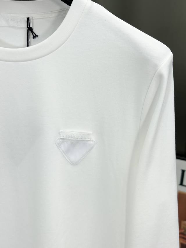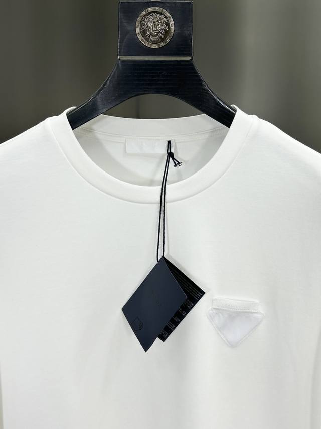Prada's new 2025 early fall men's casual crew neck short-sleeved T-shirt. Made of modal air layer fabric, this simple and elegant style features a premium fabric with a tight density that resists deformation over time. The slightly stretchy, soft, and textured fabric provides excellent comfort and breathability! This urban, simple, and stylish casual classic crew neck silhouette is versatile and easy to wear for any age or figure. Sizes: M-3X1, with a fitted size of S, 4X1, and 5X1. Custom sizes available. No after-sales service.