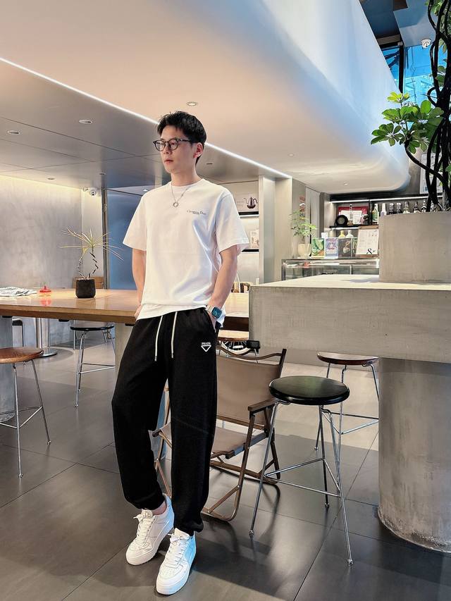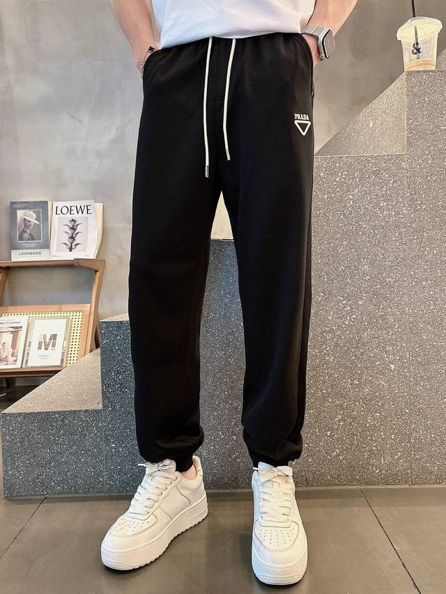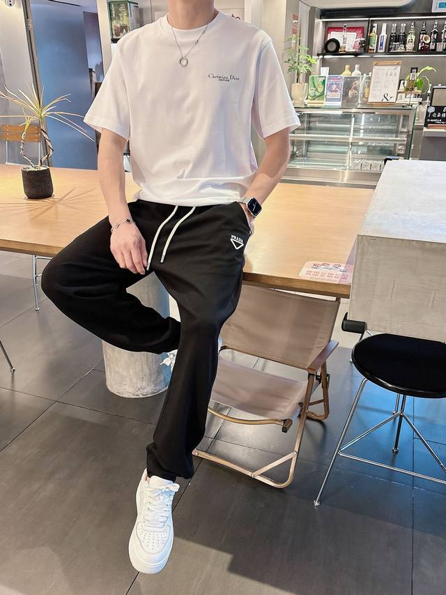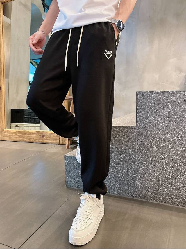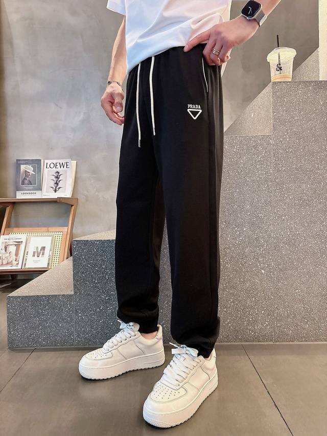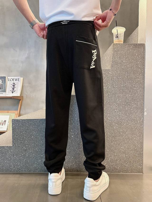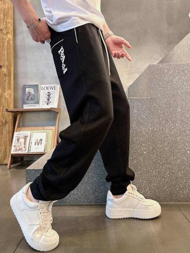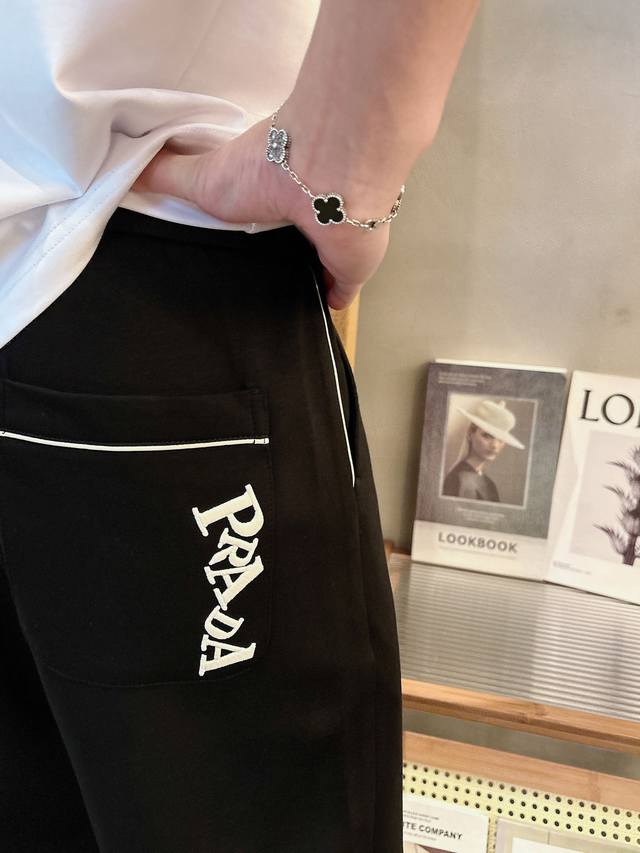 Prada's new 2025 summer cupro-ammonia silk modal air layer casual sweatpants feature the iconic brand logo embroidered on the pants and custom brand-engraved hardware, highlighting the brand's style. Crafted from 100% imported fabric, they are soft, comfortable, and breathable. These stylish and casual pieces are versatile and stylish.