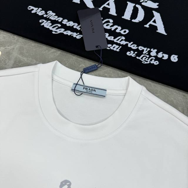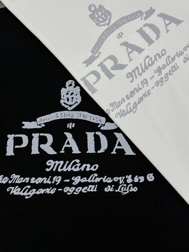Prada's new 25S modal T-shirt. Premium quality meets contemporary fashion. Features a textured Prada label on the chest and a large, 3D heat-stamped graphic for a sculpted look. Excellent workmanship! Made from heavyweight 280g modal cotton, it's comfortable and stretchy... A must-have for a base layer and a single layer! Colors: Black, White. Sizes: M-4X1 for a flattering fit! Size L