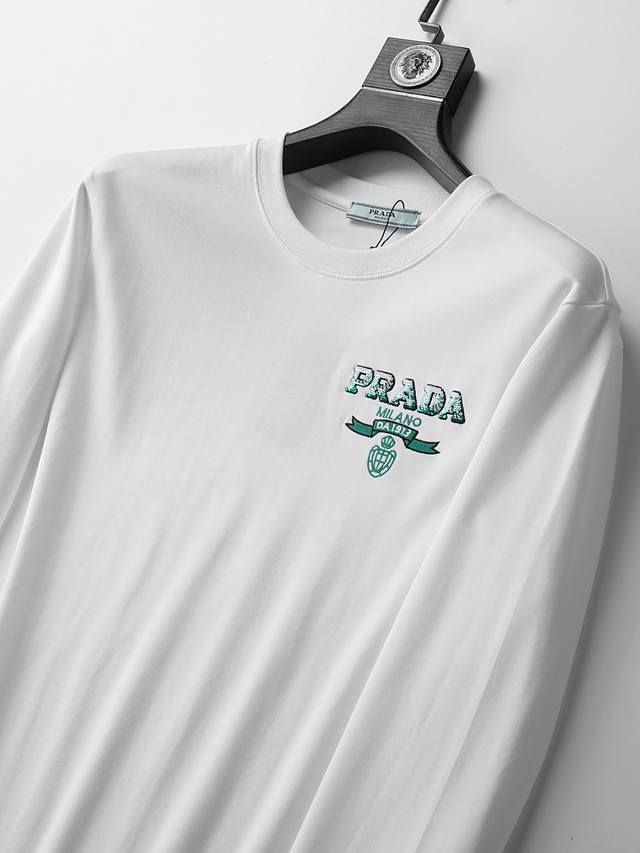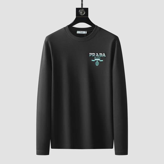 Prada's new autumn and winter fashion casual long-sleeved T-shirt is made from imported high-density double-sided stretch cotton fabric with an exquisite original logo. It is comfortable and breathable, soft and wrinkle-resistant, with excellent elasticity and drape. Whether worn alone or as an inner layer, it is very handsome and fits the practical dressing habits of men. The pursuit of luxury, nobility and elegance creates an extraordinary man's taste. The visual effect is very good, the grade is extremely high, simple and fashionable, and it is a must-have for casual business!