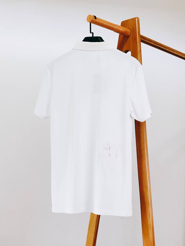 brand logo on the chest is a striking feature of this polo shirt. The classic triangular logo is refined and three-dimensional, with clear details highlighting the brand's consistent high-quality craftsmanship. The vibrant red logo band next to it creates a striking visual impact, subtly conveying the brand's identity.