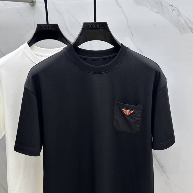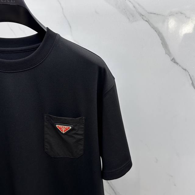 Prada's new fall 2025 short-sleeved base T-shirt, featuring seasonal colors, conveys an elegant charm, making it an ideal everyday style. The chest logo subtly identifies the brand, with three-dimensional lettering and meticulous workmanship. Stylish and comfortable, it comes with all three logos. Sizes: M-3Xl