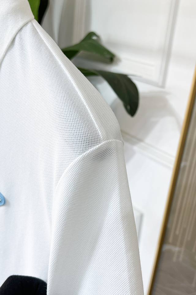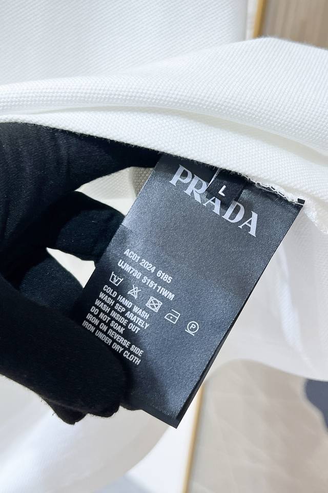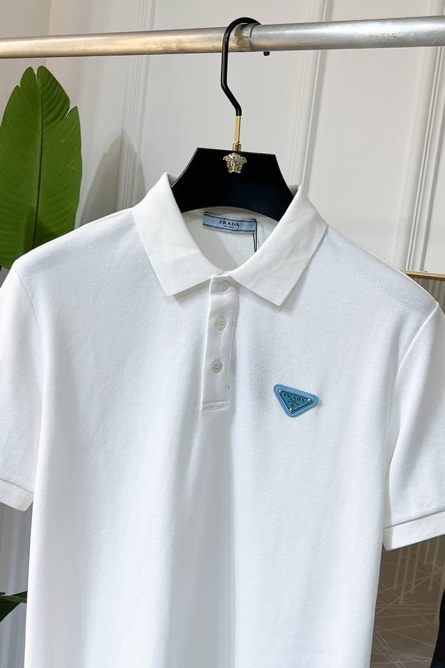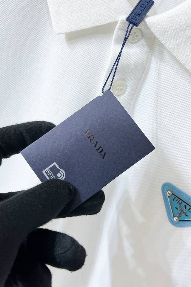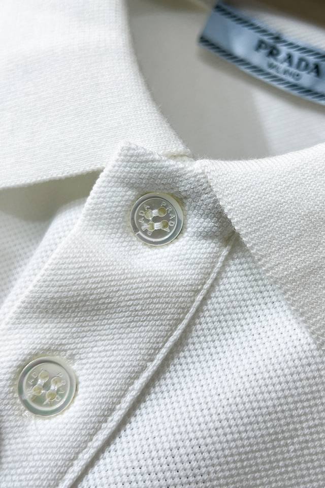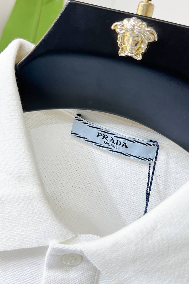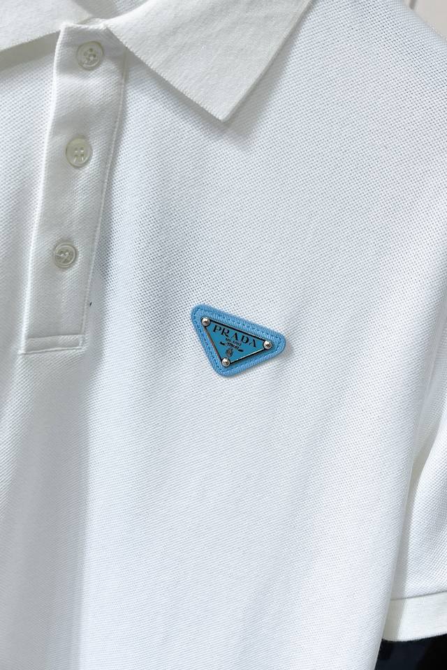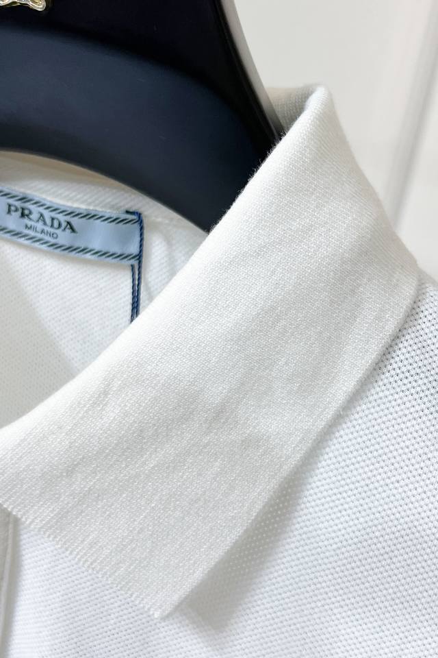 Prada's new Polo-neck short-sleeved top from the 2025 Spring/Summer Year of the Snake collection. Made from premium pique cotton fabric with stylish logo designs, it features a stunning silhouette. The fabric is comfortable and breathable, and looks great with any outfit. A must-have for stylish men! Sizes: M-3Xl. Model is 178cm tall and weighs 145lbs. Top size L is