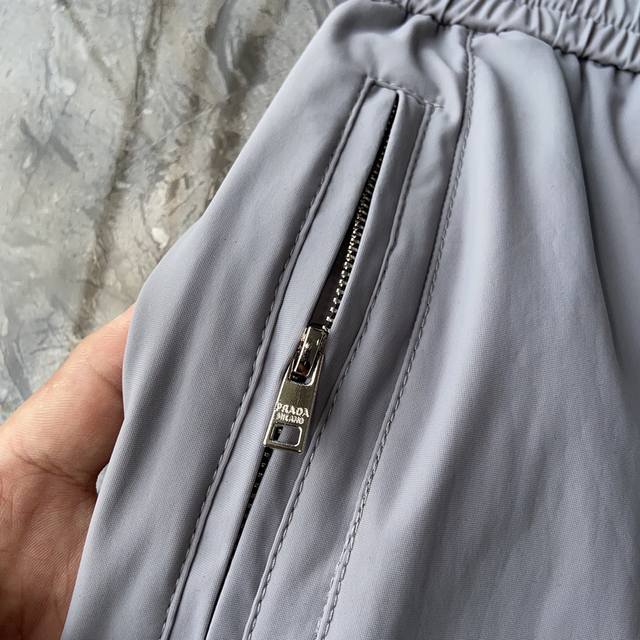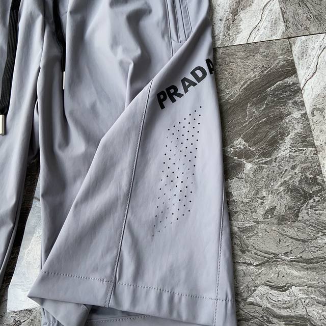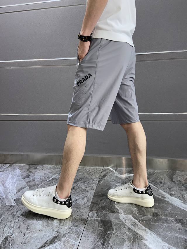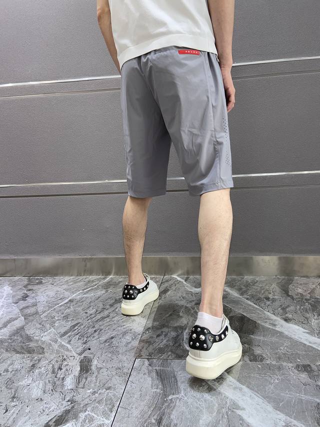 Prada's new summer style. Made of top-grade imported custom stretch ice silk fabric. Logo design with classic red plastic label. Fashionable and breathable. Lightweight and smooth. Retractable waist. Sizes M-4Xl