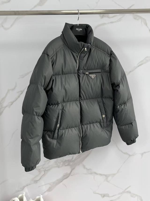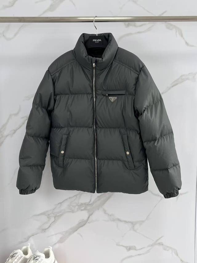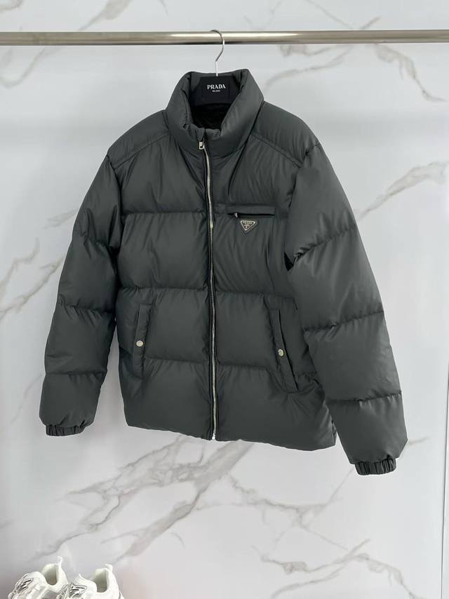 Premium down Prada Prada technological leather membrane down jacket with glued version. The fabric of this garment is 24 latest technological fabric, which maintains the soft and delicate texture of sheepskin. It is lighter and easier to maintain than conventional leather down jackets. The filling is made of national standard 90 goose down, which is extremely warm. The double-layer liner is very well sealed to prevent down from seeping in. The hardware is the original matching hardware. All rope clips and adjustment buckles are custom-made. The metal triangle label on the chest is the finishing touch. Only those who really make clothes can explain the secrets here. This is a must-buy down jacket with both texture and warmth. Bll
