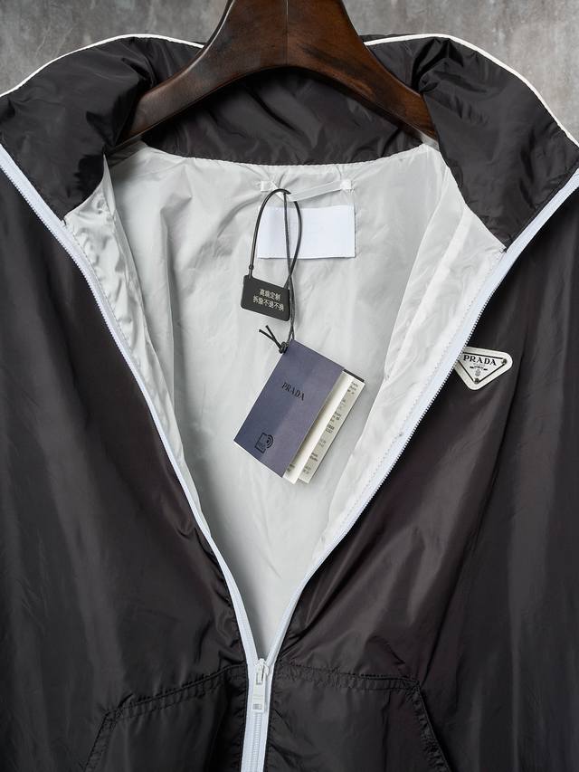 Real object hanging Prada Prada nylon white zipper white label hooded light windbreaker jacket