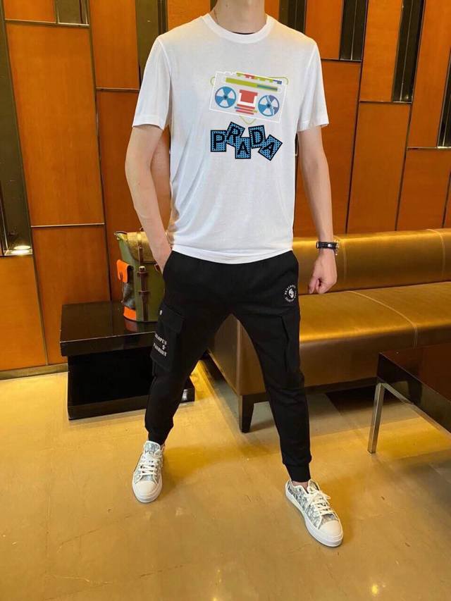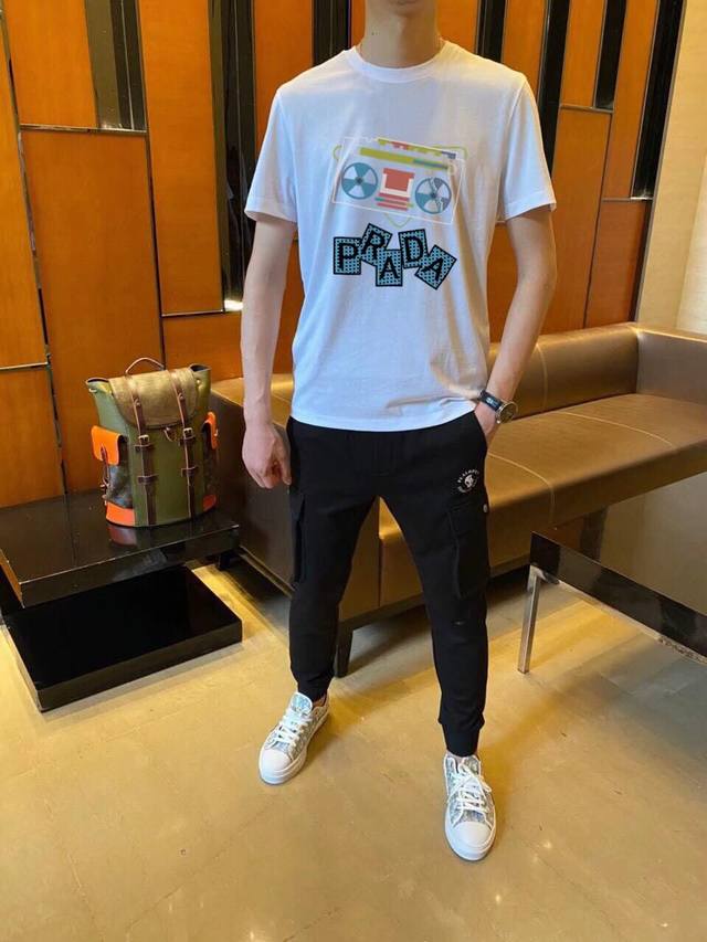 Special offer on the new Prada Spring/Summer men's crew neck short-sleeved T-shirt, now available at our stores! A truly exceptional piece! Made from imported Italian mercerized cotton fabric, this fabric offers exceptional quality! It's comfortable, stays put, resists fading and deformation, and offers excellent skin-friendliness with impeccable details. A must-have for the sophisticated and sophisticated! Sizes: M-3XL. Please specify your height and weight (