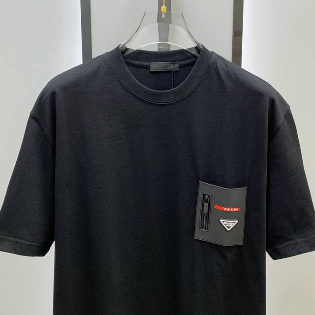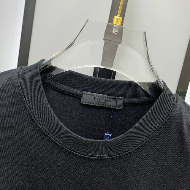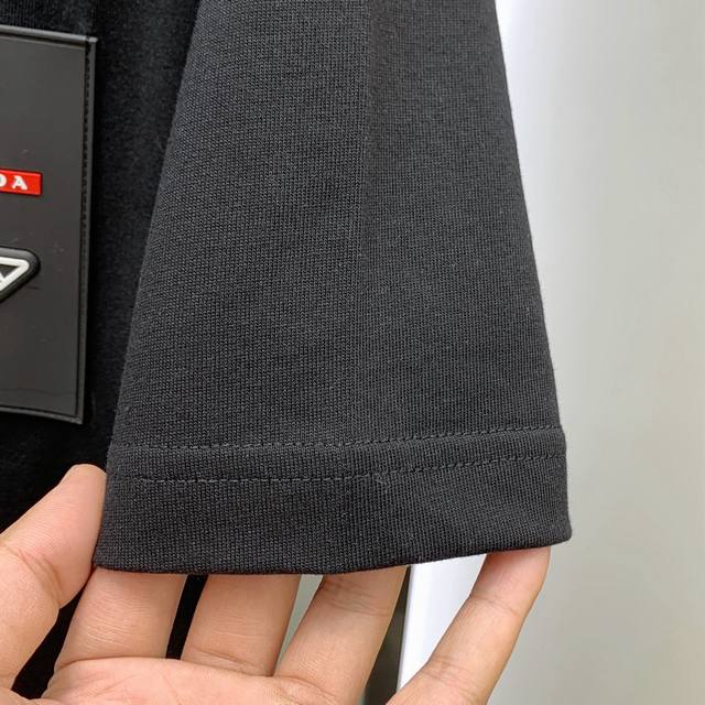 Ss Prada pure cotton latest fabric classic logo pattern Logo fashionable and simple trendy short sleeves, the top quality counter original short sleeves, top production process imported fabrics, counter style unique design, using imported high-end custom fabrics. On sale on the official website! Fabric version is superb Size: .. Black and white M-3Xl