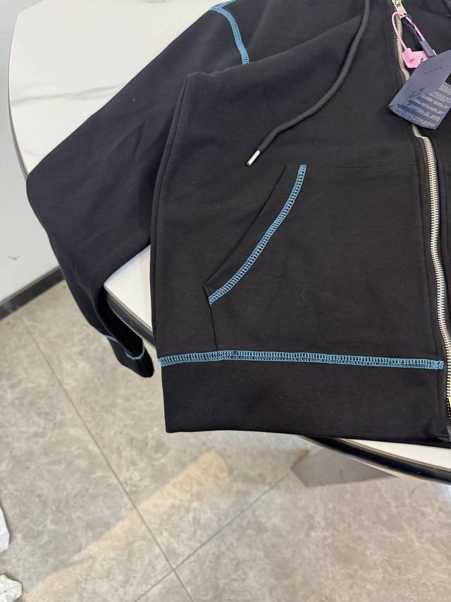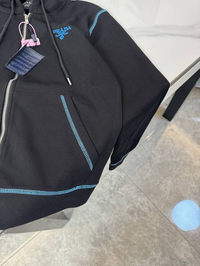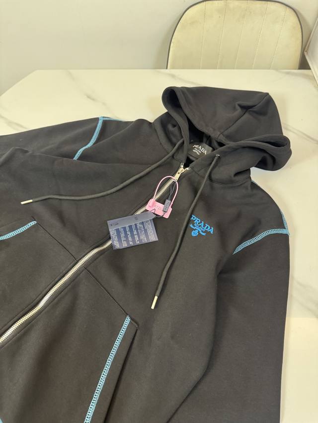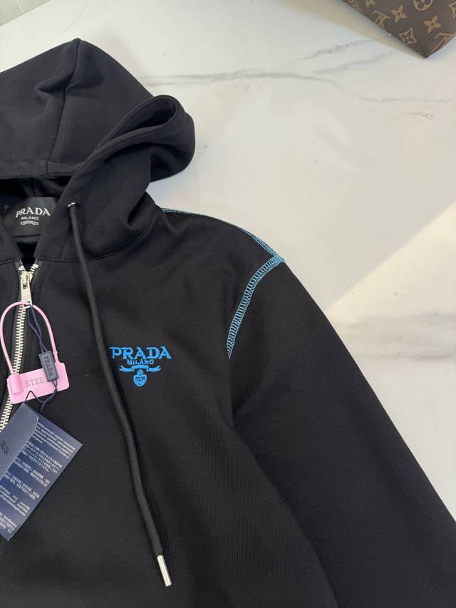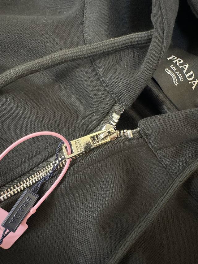 Style number: F07 Prada hooded sweatshirt jacket with embroidered Prada letters