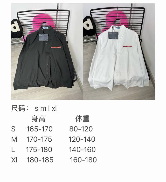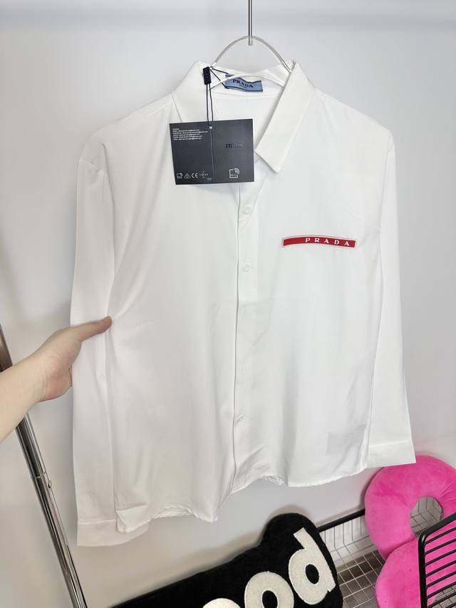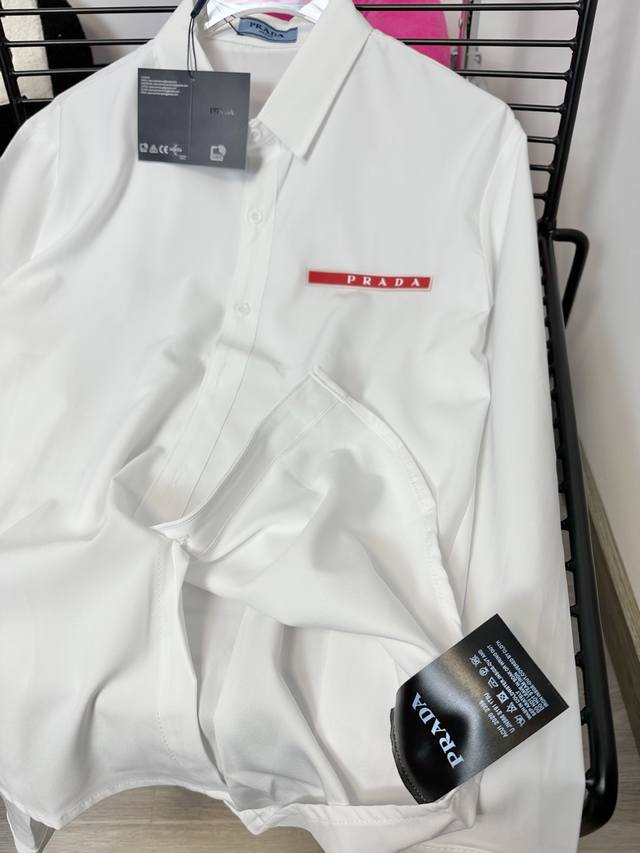 Prada classic red label small leather label long-sleeved shirt, unisex style, versatile
