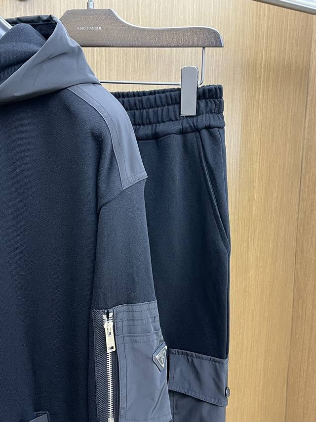 The unique pocket design is truly eye-catching, cleverly incorporating classic brand elements. It's both practical and instantly recognizable, silently conveying Prada's brand story and approach to fashion. The fabric is impeccably soft and comfortable, offering a seamless, unrestricted fit and freedom of movement.