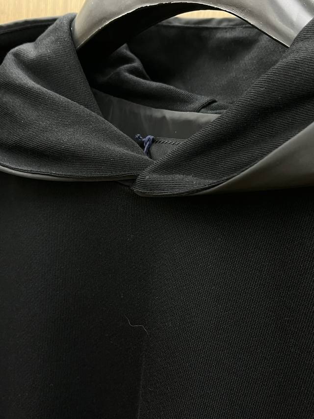 This black hooded sweatshirt from Prada is the perfect blend of style and comfort. Its classic, pure black color scheme creates a sophisticated look, complementing any outfit. The hooded design adds a touch of casual, streetwear flair, instantly transforming you into a cool, trendsetting figure.