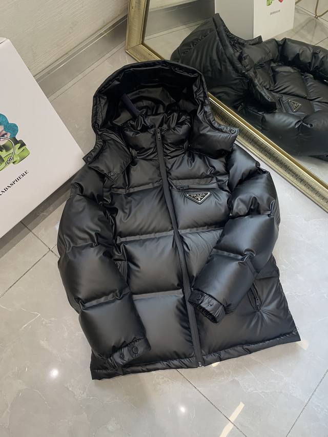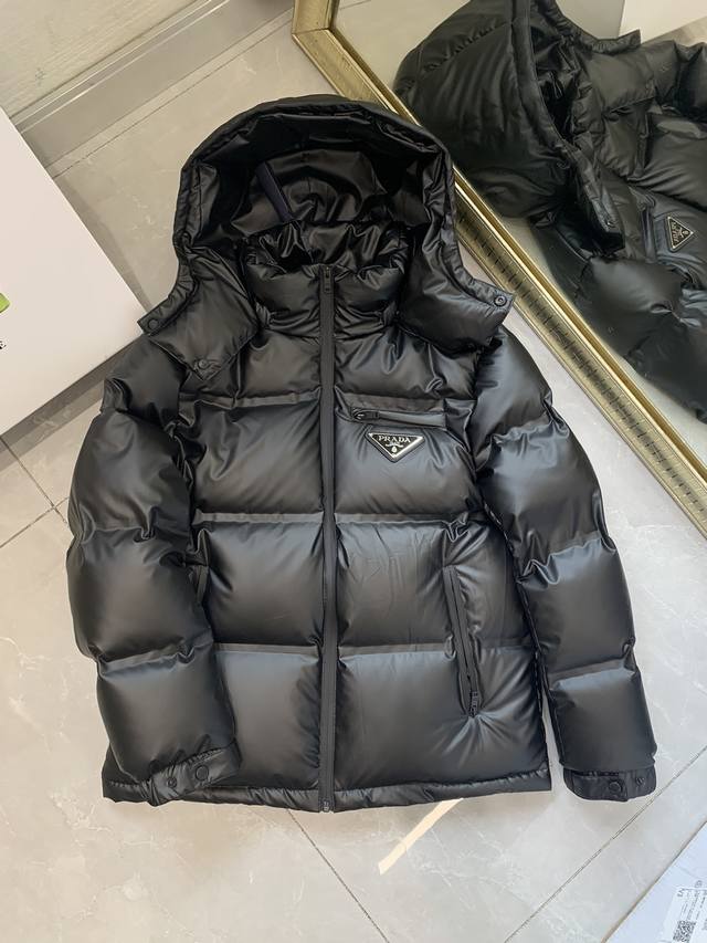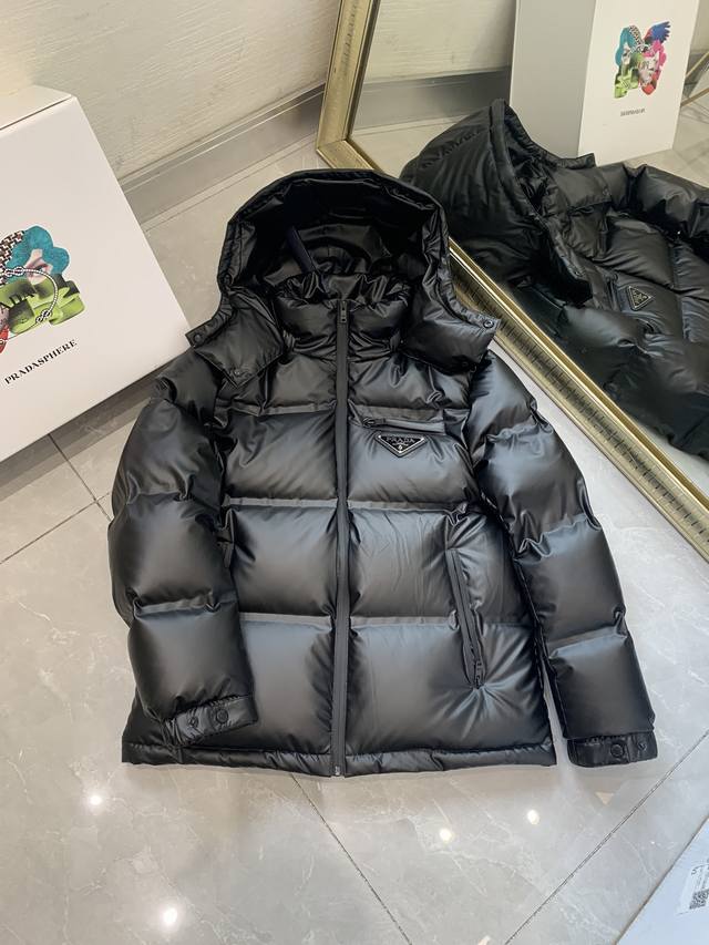 Winter Hot Selling Item, Prada, 2025 Winter New Arrival, Available in Department Stores, Stylish Casual Stand Collar Down Jacket, Imported Original Fabric, Extremely Complex Workmanship, The Only Channel Offering Top-Quality Items at the Proxy Shopping Level, Top-Tier Sealing Process for Letter Pattern Logo, Original Hardware Accessories, Extremely High-End, Comfortable and Versatile, Looks Stylish and Handsome, 2 Colors Recommended, Sizes: 48-50-52-54-56 DDD