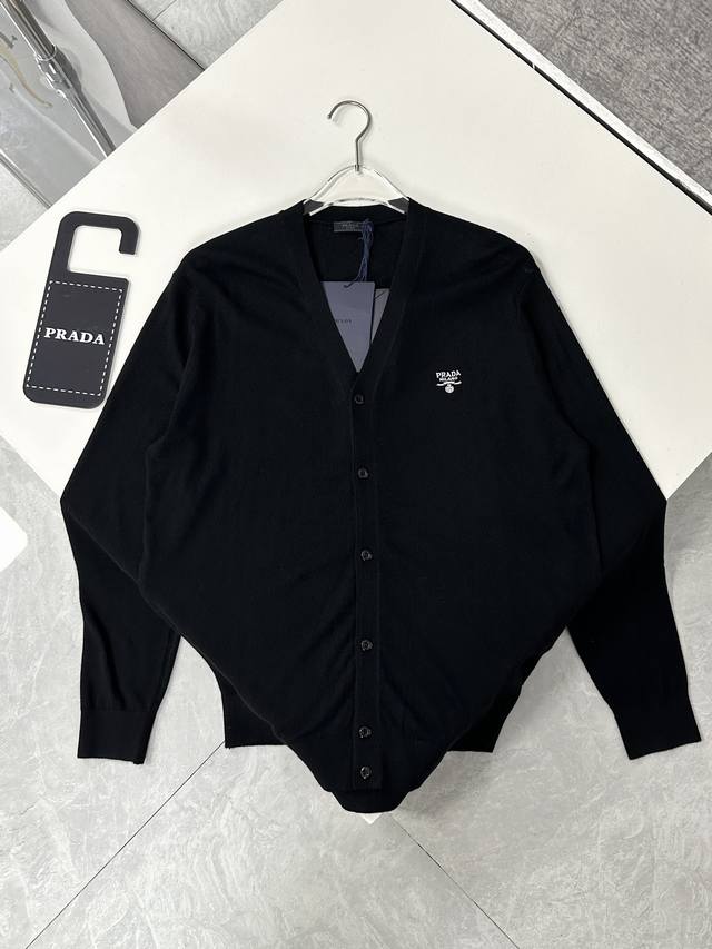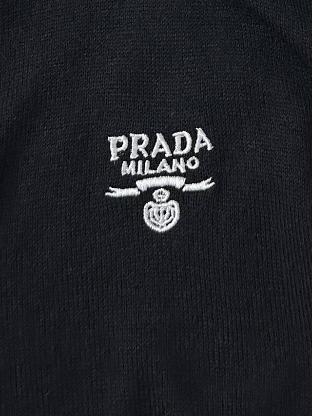 Y250S35prada Prada's new fall 2025 classic logo embroidered wool cardigan is soft, smooth, and non-snagging. A perfect early fall outfit for men!