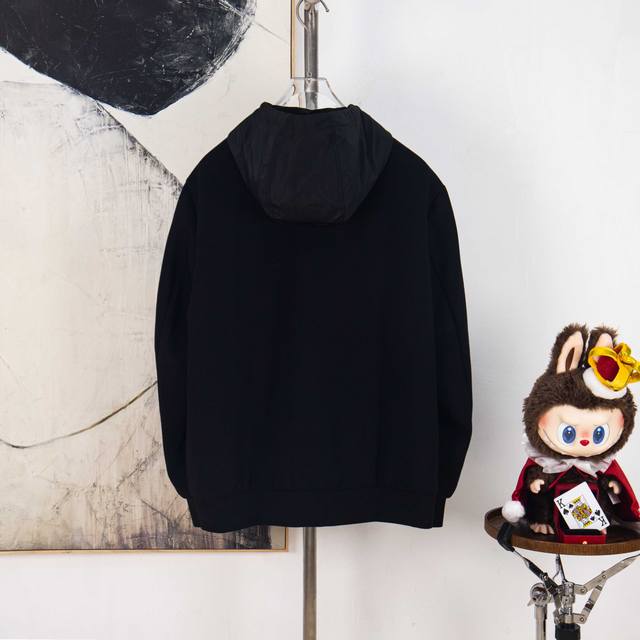 Prada 2025 new zipper pocket triangular badge couple's hooded jacket