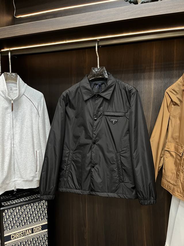 Featured: Prada 2025 latest designer coat with a lapel collar. Every detail showcases exquisite craftsmanship. The sophisticated structural tailoring allows for diverse masculine looks. Slim and tailored, it's perfect for layering and is a versatile everyday style! Color: Solid color Sizes: S-XL New 2025 release