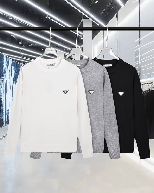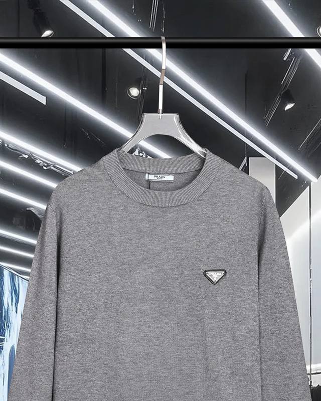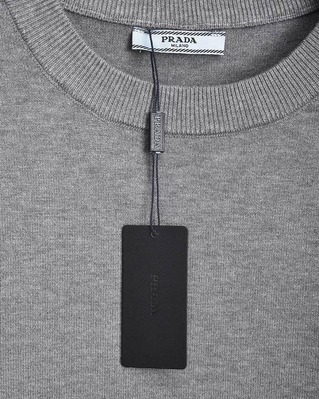 For Prada 2025Fw classic style chest badge logo letter logo simple casual pullo