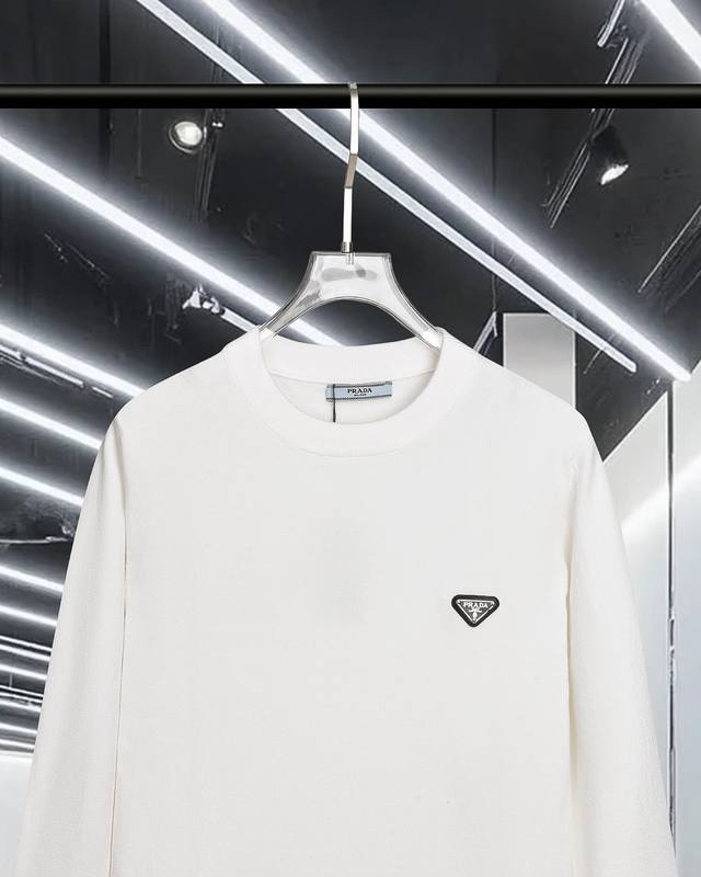 For Prada 2025Fw classic style chest badge logo letter logo simple casual pullo