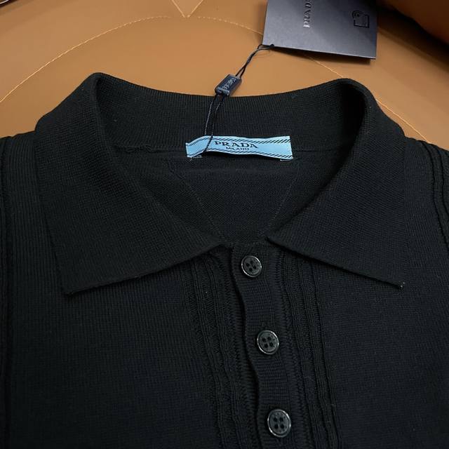 High version , Prada 2025 new pure cotton knitted Polo shirt T-shirt for men and