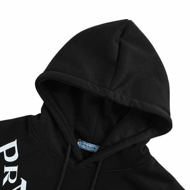 Highly Retouched Real Shots, Worry-Free After-Sales Service. Prada Logo Print Hooded Sweatshirt, 480G High-Grade Combed Cotton Fabric, Original White Thick Hang Tag with Original Label and 3D Foam Print on the Front and Back, Unisex Style, Oversized Fit. Size: S-XL.