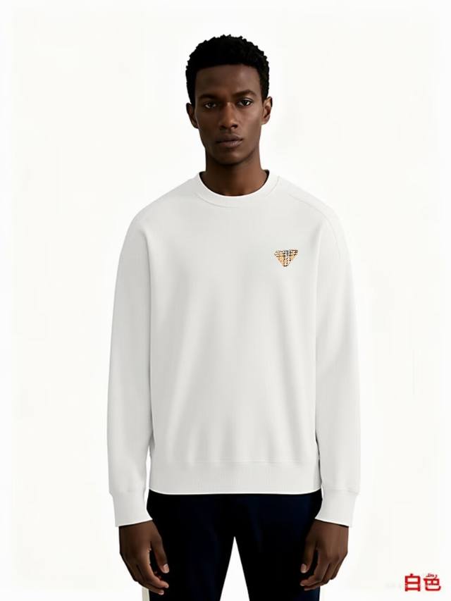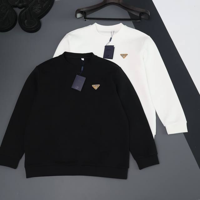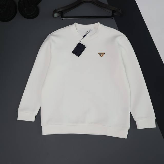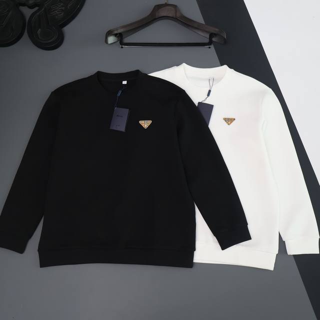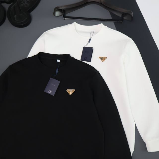 Prada 2025 high-end foreign trade order goods are arriving! Two-tone couple's round-neck sweatshirt with chest lettering logo! High-end quality!
