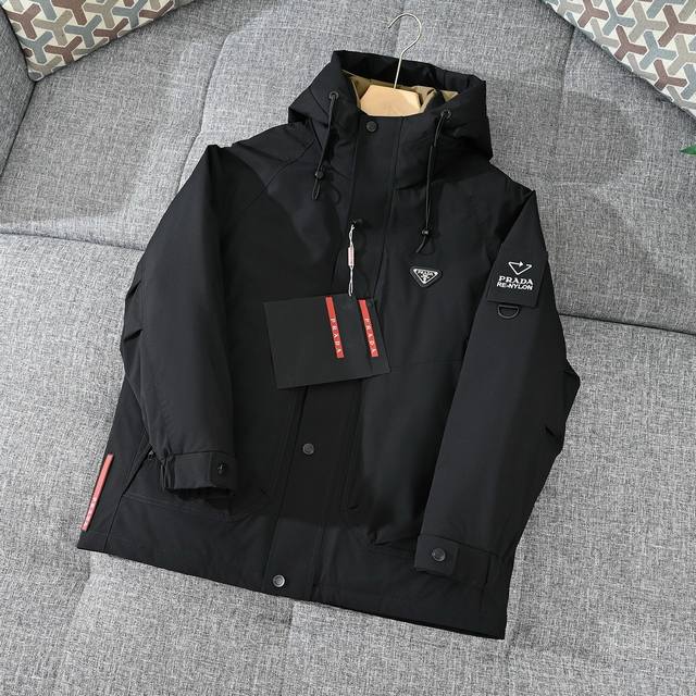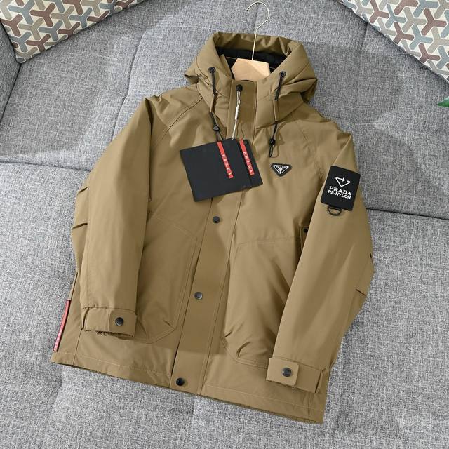 Prada 25S Triangle Logo Epaulette Workwear Style Men's Down Jacket!