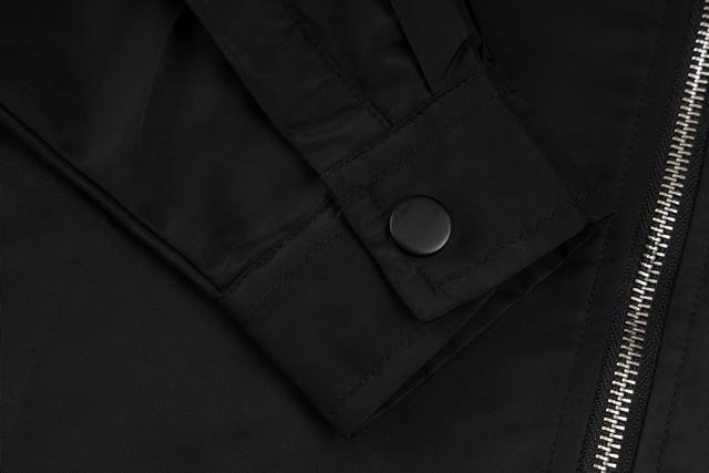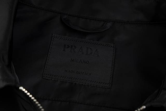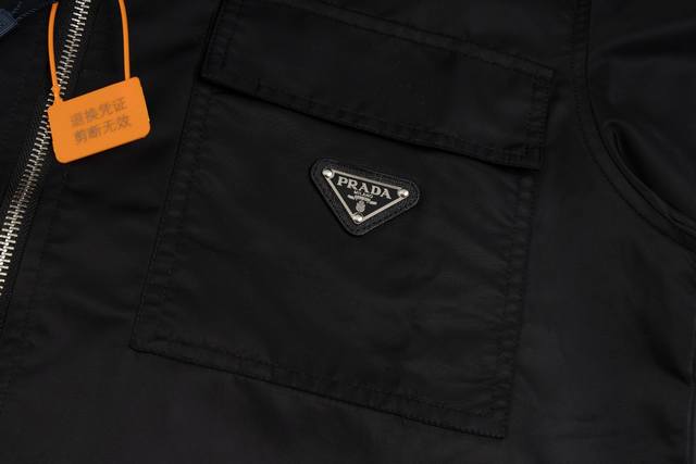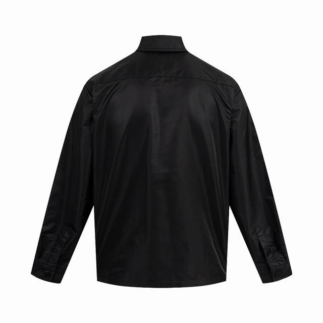 New Arrival: Prada 25Fw Recycled Nylon Pocket Triangle Label Zipper Shirt. Features a custom logo zipper on the front, a casual jacket style, and professionally customized recycled nylon fabric. The collar label and triangle label are also custom-designed. Suitable for both men and women, and can be worn as a couple's outfit! Color: Black Sizes: S, M, L, XL Style Number: