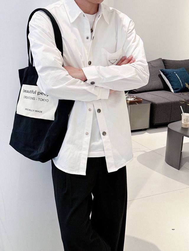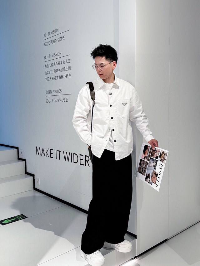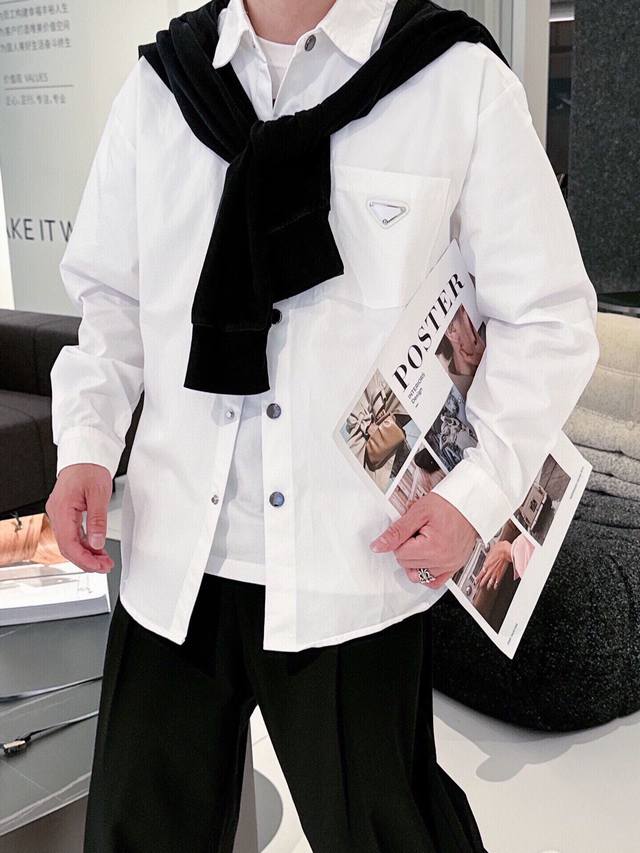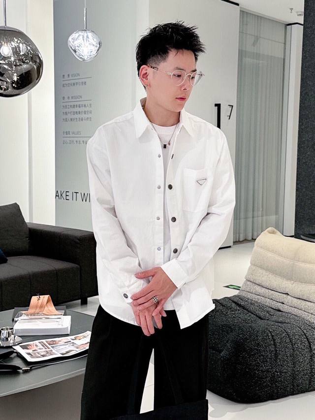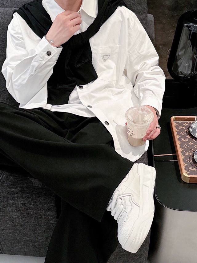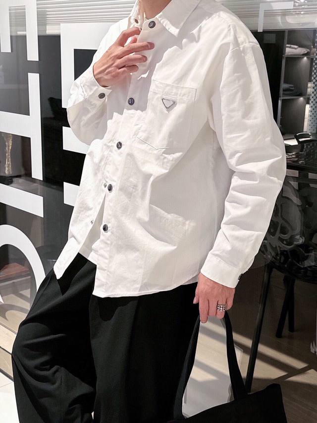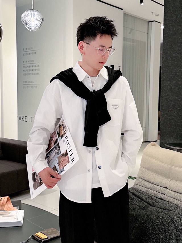 New Prada boutique shirt! Released through a top-rated channel, this is another high-end boutique shirt that exudes sophistication, making it a versatile piece for both casual and business occasions! Made from custom-woven pure cotton, the fabric is silky smooth, soft, and lustrous. A simple triangular logo pattern adorns the chest. The shirt drapes naturally and easily regains its smoothness with a light ironing. Subtle yet sophisticated, it showcases an exceptional lifestyle! Colors: Black, White Sizes: M~3XL Style Number: 5833