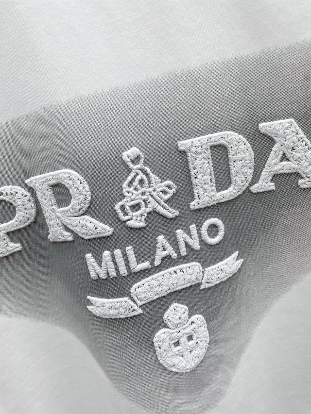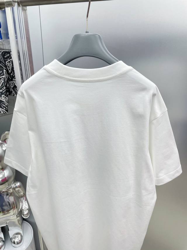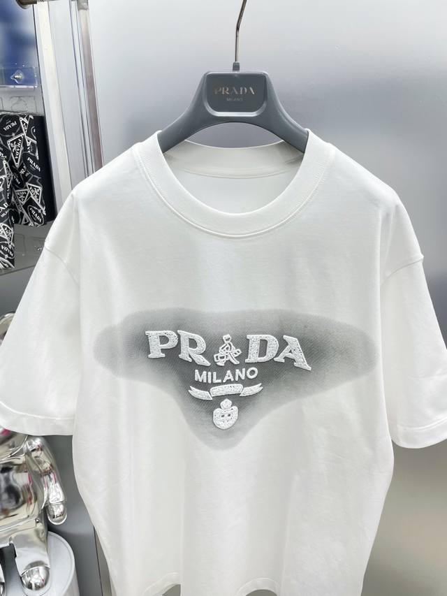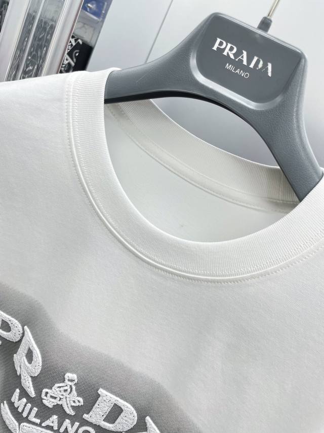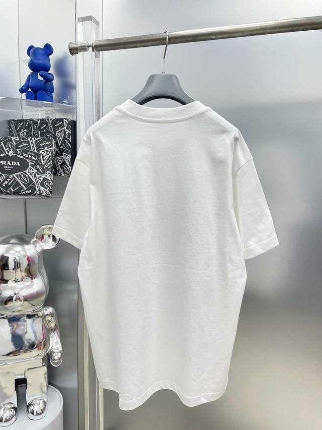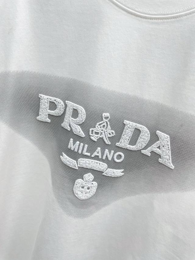 pra Prada High Weight 2025 Summer New Arrival Short-Sleeve T-Shirt with Embroidered Triangle Logo and Little Man Letters. Available in stores, original quality, fashionable imported technical fabric, comfortable and breathable, original custom hardware, stylish and chic, complete with tags. Highly recommended, extremely high-end. Sizes: M-3XL.