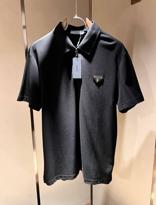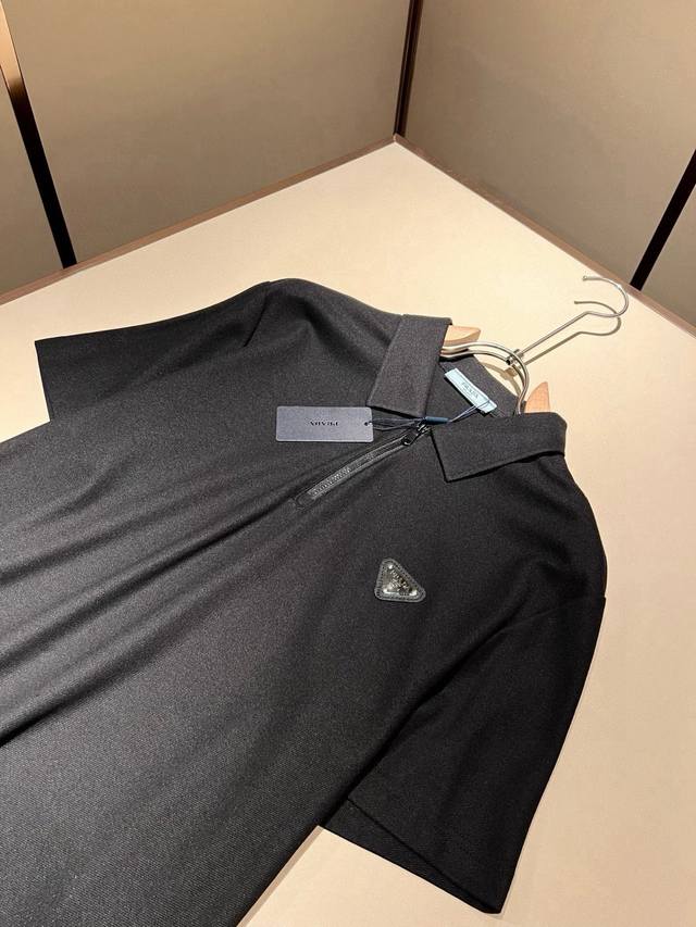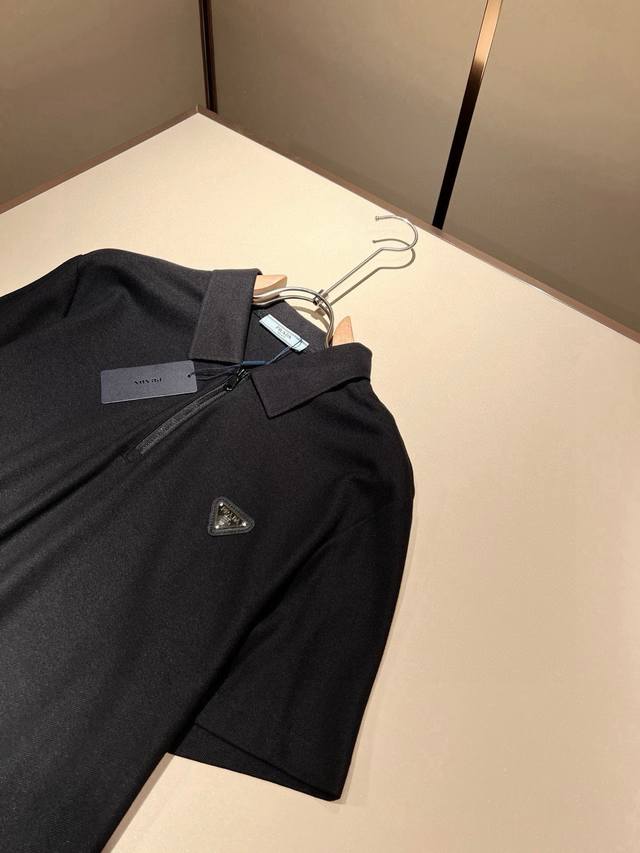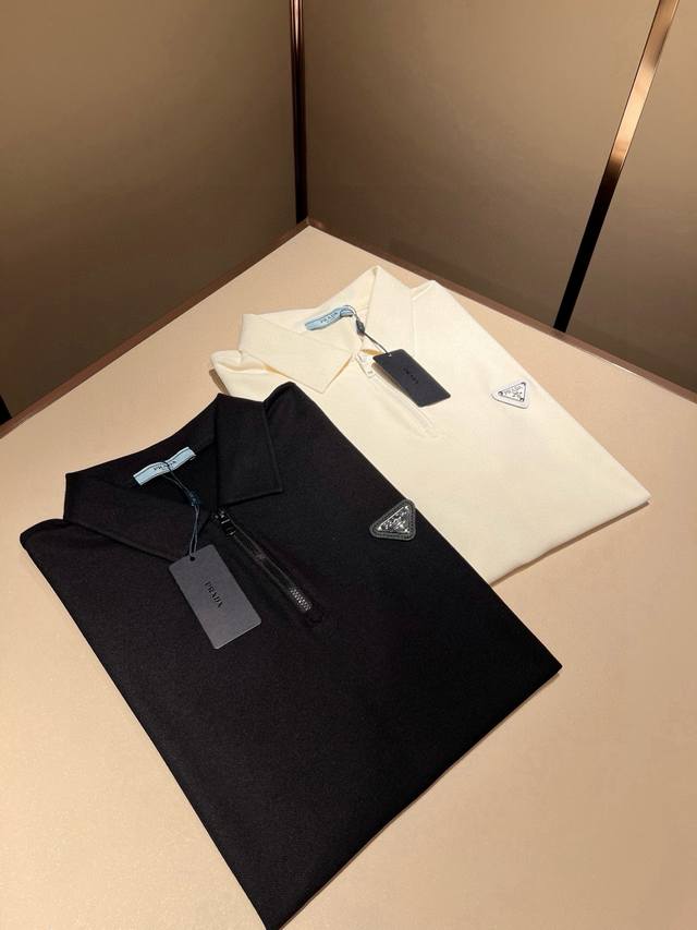 Prad 2025 Spring/Summer New Classic Short-Sleeve Polo Shirt. A classic and stylish design that will remain fashionable for ten years. You absolutely must own a few! A rare and exquisite piece that you can't live without! A piece of good taste ! So important that it's indispensable in any season. Made of 100% imported top-grade pique cotton! Finely woven! Durable! One of the world's best cottons! The feel and texture are absolutely perfect . The triangular metal logo design on the chest perfectly enriches the visual appeal! Making you feel clean, neat, fashionable, and good-looking!! Wearing this Prad short-sleeved shirt, you'll know what it means to have a truly worthwhile life! Prada has always been a symbol of quality living pursued by European aristocracy and high society. This simple, casual, and versatile T-shirt is a luxurious piece that allows you to express your personal style. The fashionable and luxurious materials and meticulous craftsmanship are the main reasons Prada's popularity. The neat and stylish round neck, warm and comfortable fit, and easy-to-wear and versatile design make it a versatile piece. The black and white color options exude style and chicness