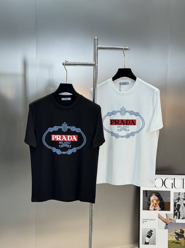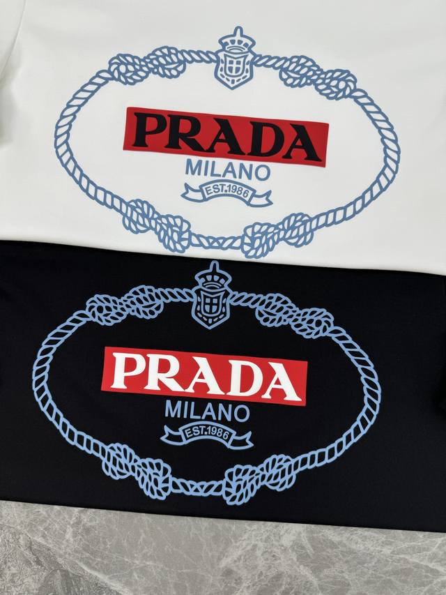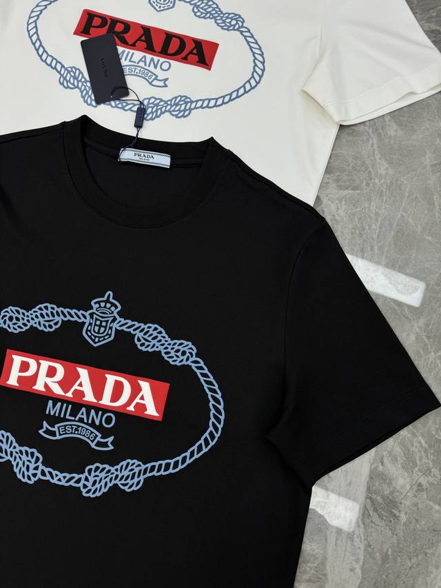 Prad 25S Spring/Summer Men's Crew Neck Short-Sleeve T-Shirt. Hot Selling Recommendation! Made with premium 260g Carolina cotton fabric. Comfortable and with excellent drape! Breathable and non-sticky. The logo print on the chest greatly enhances the overall detail, instantly boosting its style! Stylish and elegant color scheme. High-temperature 3D printing process. Colors: Black, White. Sizes: S-XL. Loose fit! Recommended size: L for 175cm, 140kg.