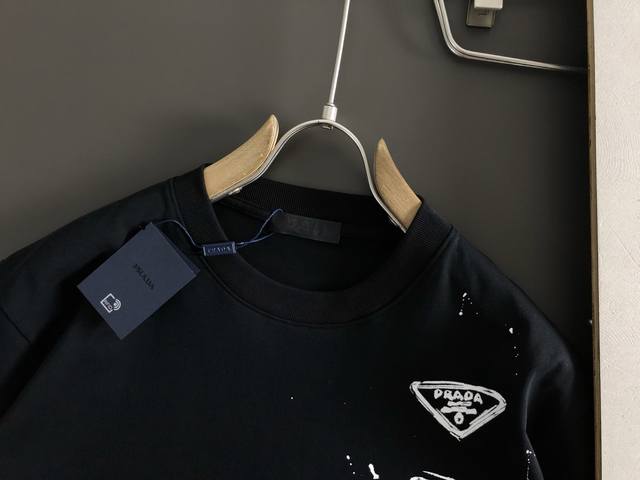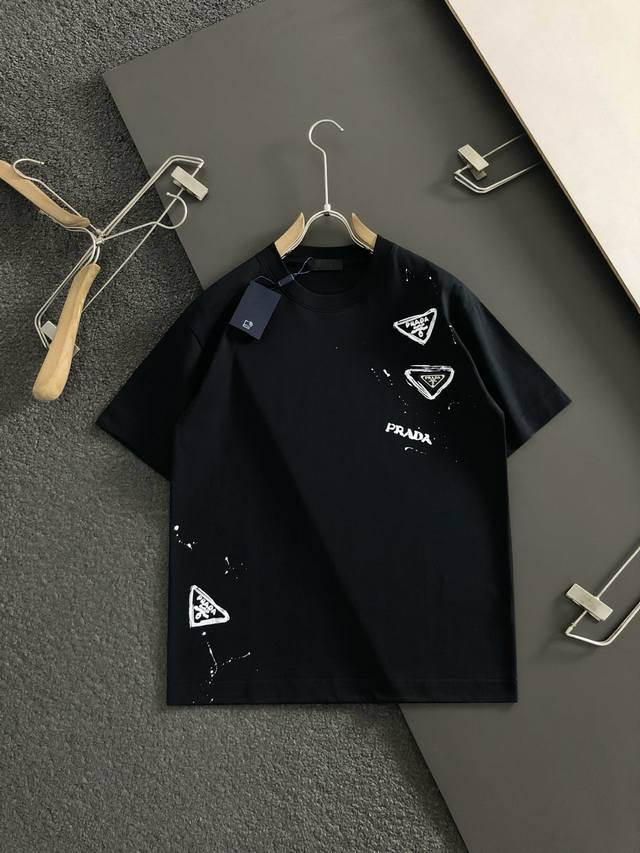25 Spring and Summer Top-woven Metal Triangle Label Graffiti Heavy-duty Craft Trendy Brand Short Sleeve, Exquisite Craft Counter Fabric, Top-grade Elements Fusion Created, 3 Complete Labels, Trendy Men's Fashion, Whether It's Upper Body Comfort or Both, It's Incomparable, It Can Be Said to Be a Must-Have for Summer