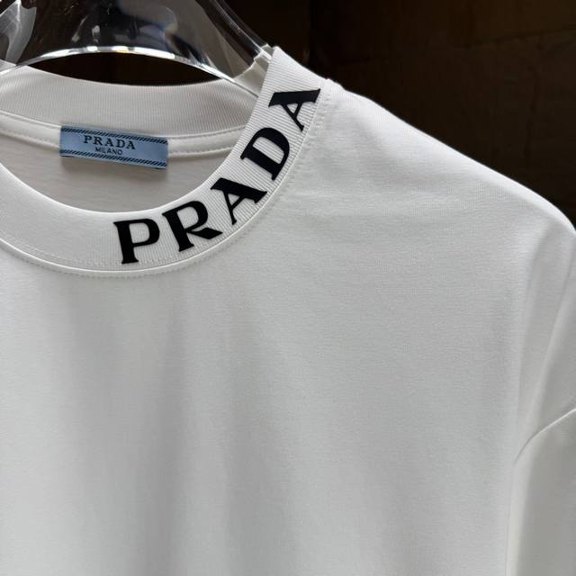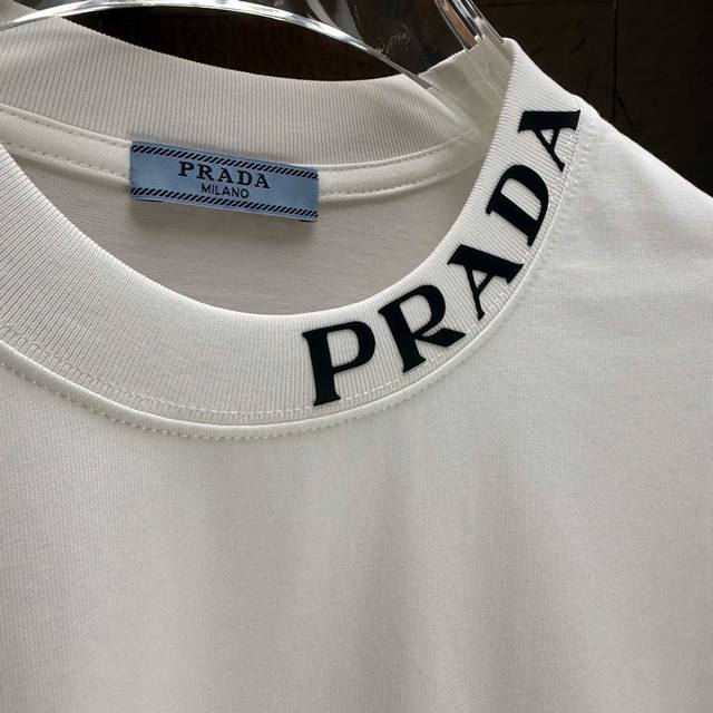 prad* Prada* Ddd 2025 Autumn/Winter New Thick Long-Sleeve T-Shirt Ddd 320g Pure Cotton Logo 3D Silicone Ddd Colors: Black, White, Night Blue Ddd Sizes: S, M, L, XL DDD
